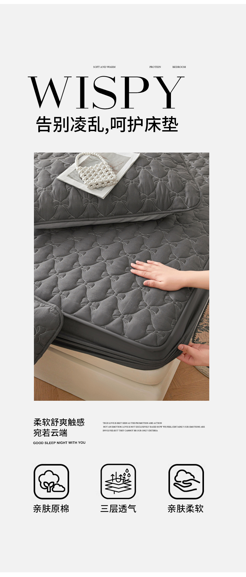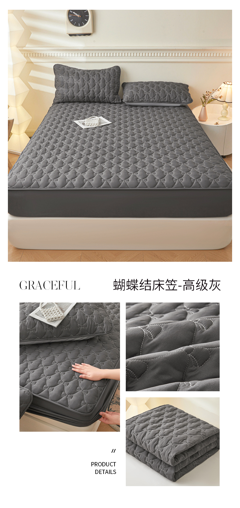 • 91家纺网 家纺一手货源 找家纺 LIFE.丽芙 2025新款水洗原棉单件蝴蝶结绗缝夹棉床笠三件套 蝴蝶结床笠-高级灰