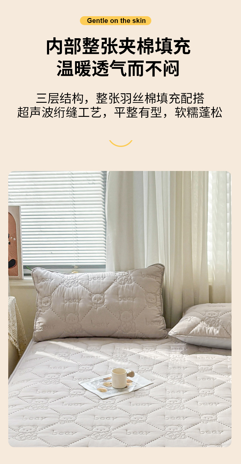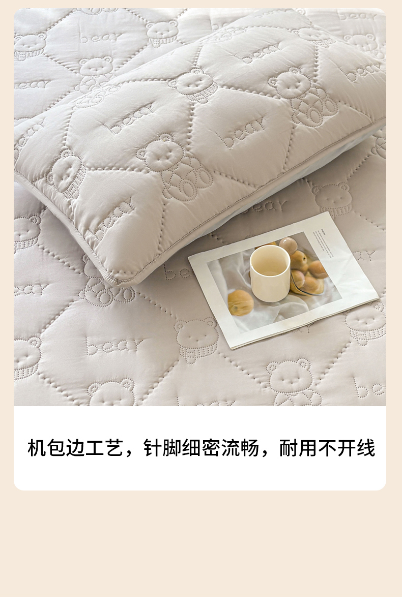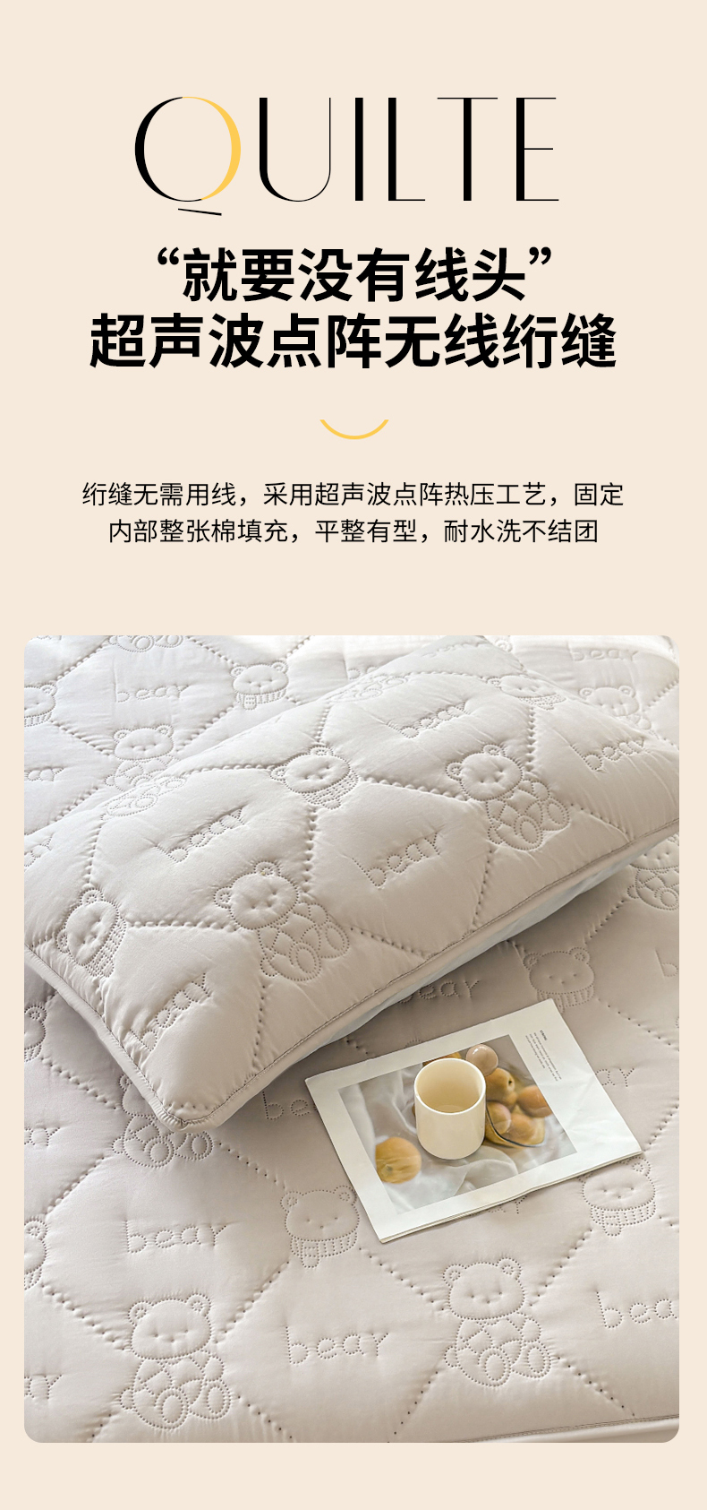 商品名称:LIFE.丽芙 2025新款磨毛超声波夹棉机包边枕套 小熊夹棉枕套-山灰