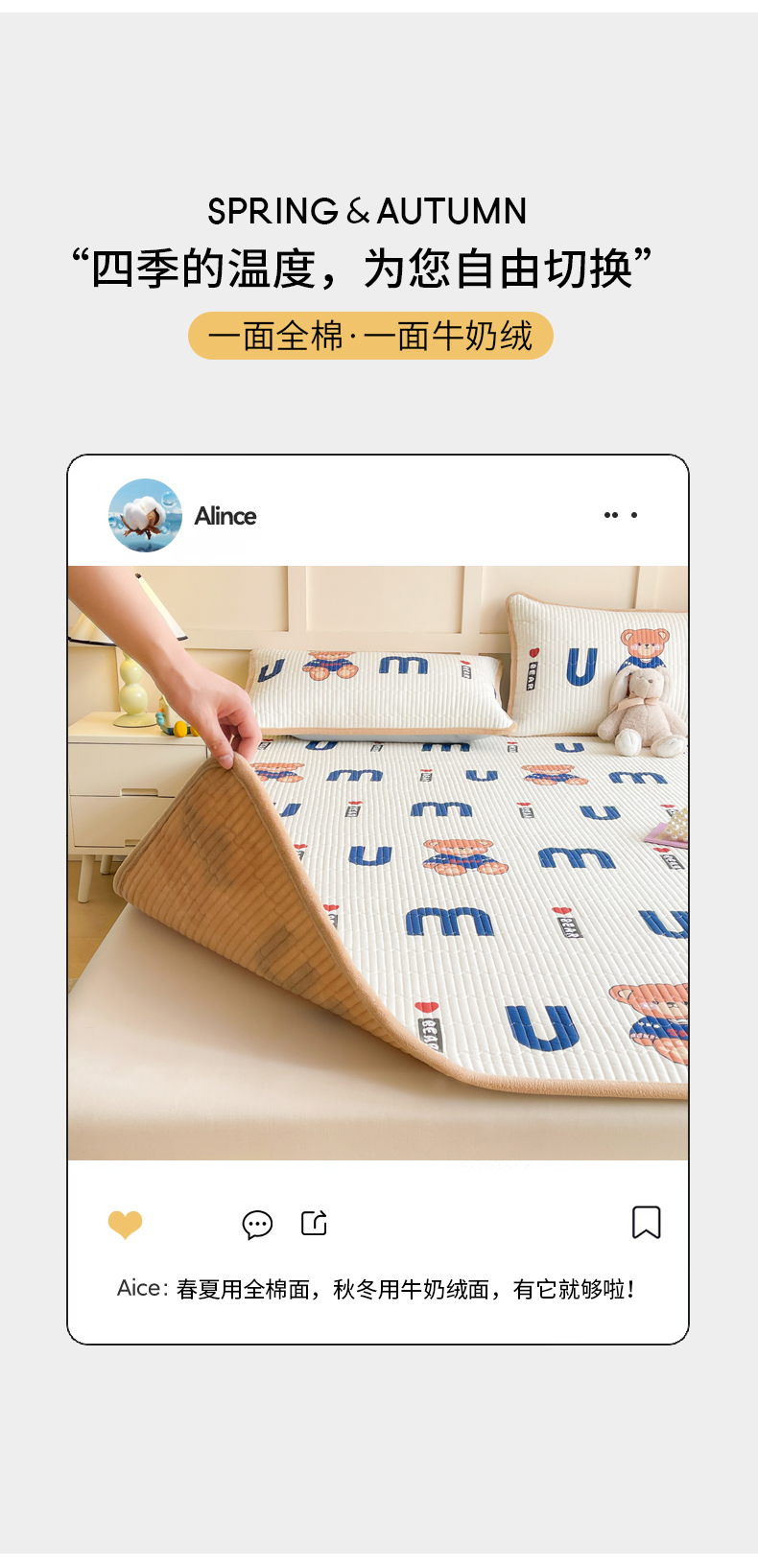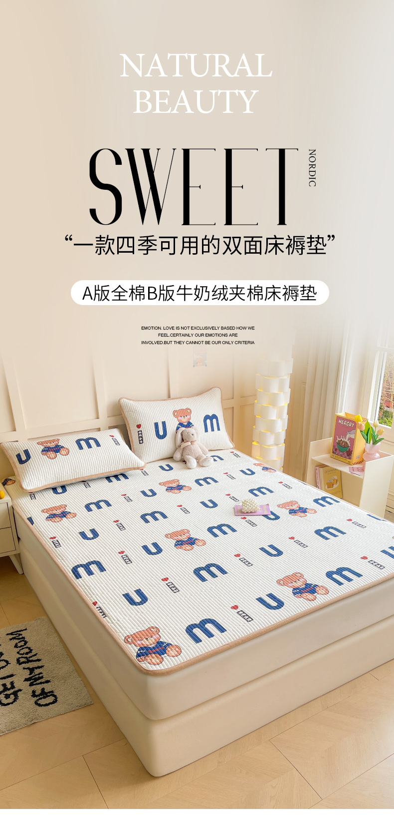 当前位置: 91家纺网 > 商品网购 > 床垫/床褥 > 普通床垫 > LIFE.丽芙 2025新款A类四季可用A版全棉数码印花B版牛奶绒单件夹棉床褥垫三件套 床褥垫-妙妙熊