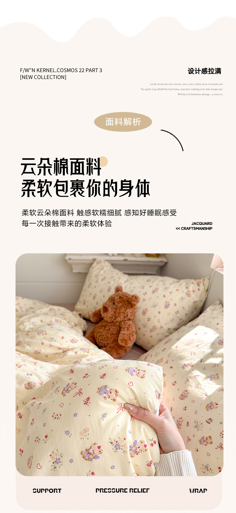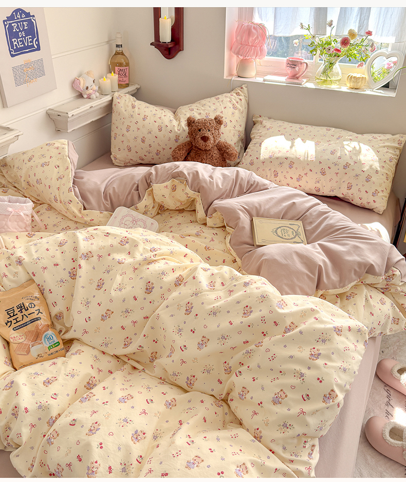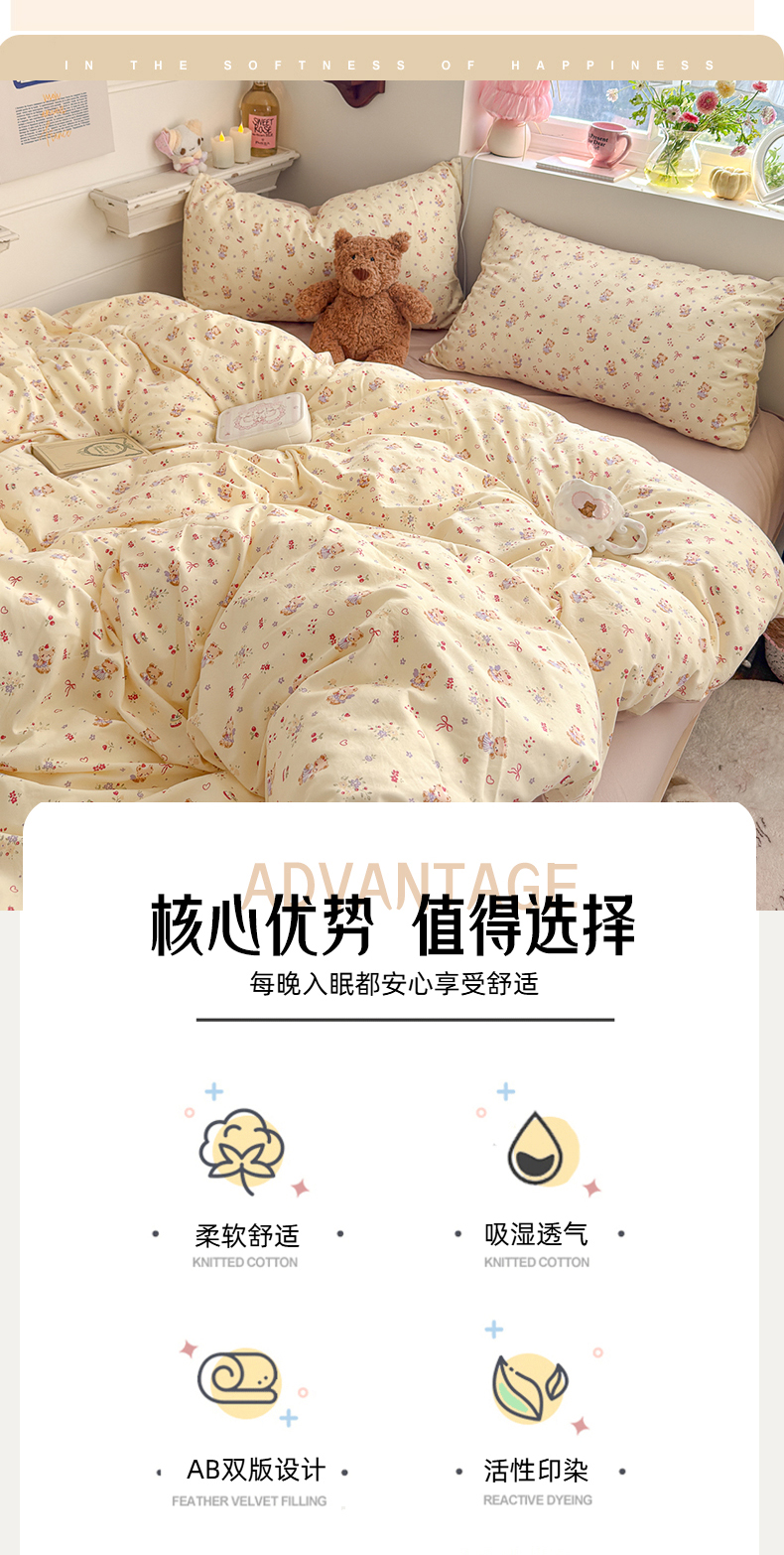 (总)佳鸿家纺 2026新款【提供买家秀】110克高克重云朵棉四件套学生宿舍三件套床单款床笠款,黄油童话,海盐奶格,眠花小屿,奶糖动物园,奶杏宠语,桃粉熊心,雾蓝软熊,雾里春芽