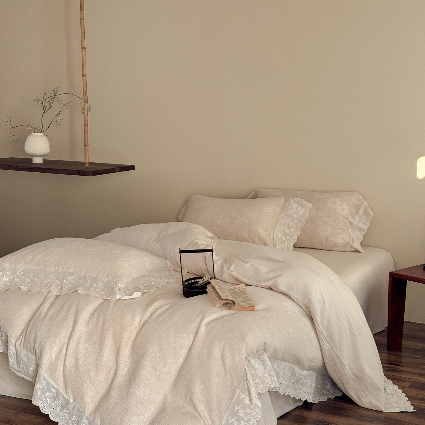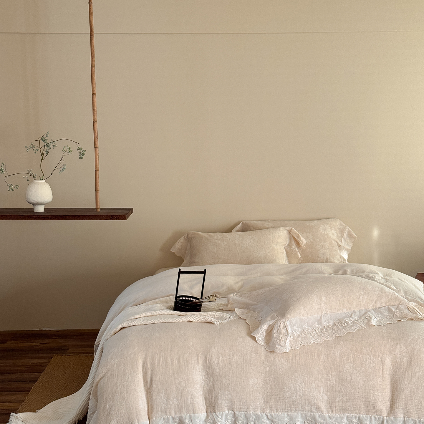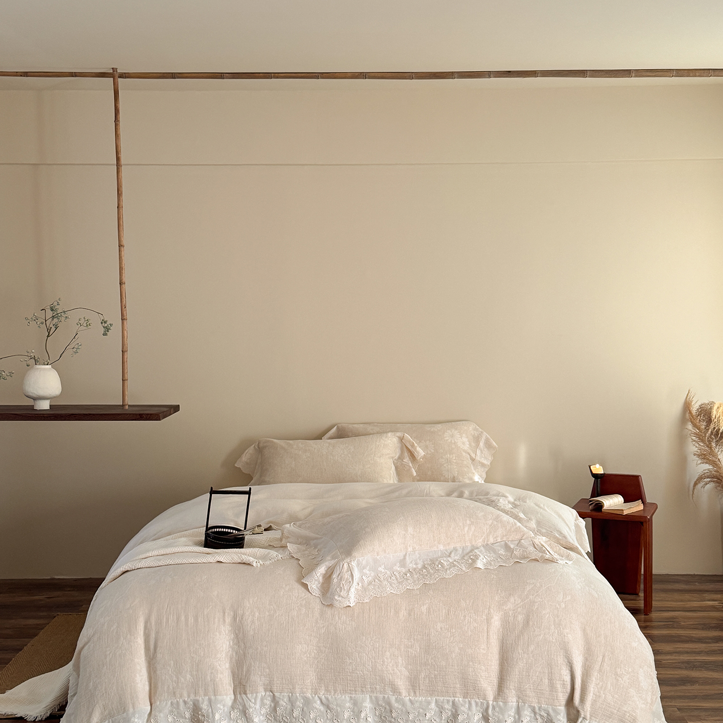 商品名称:(总)爱丽丝 2026新款色织提花棉麻四件套-椿山集花边款