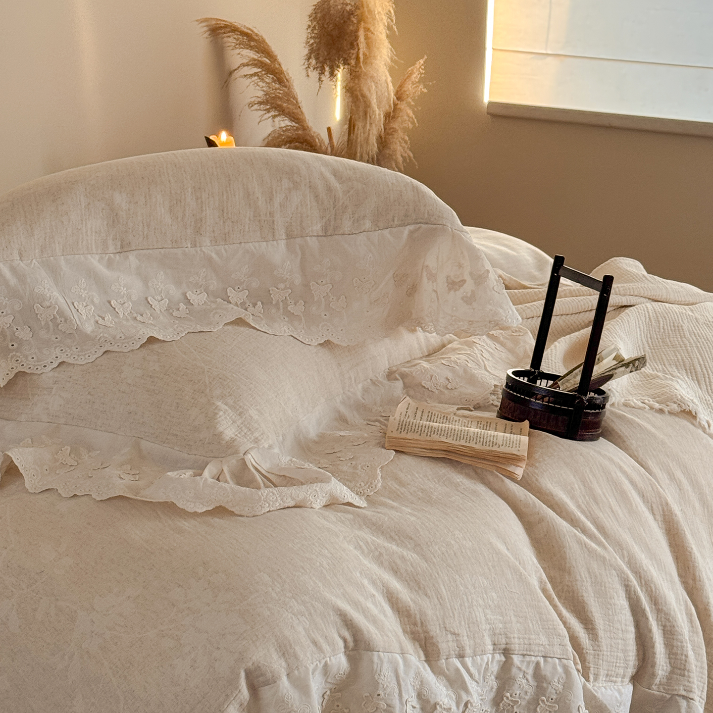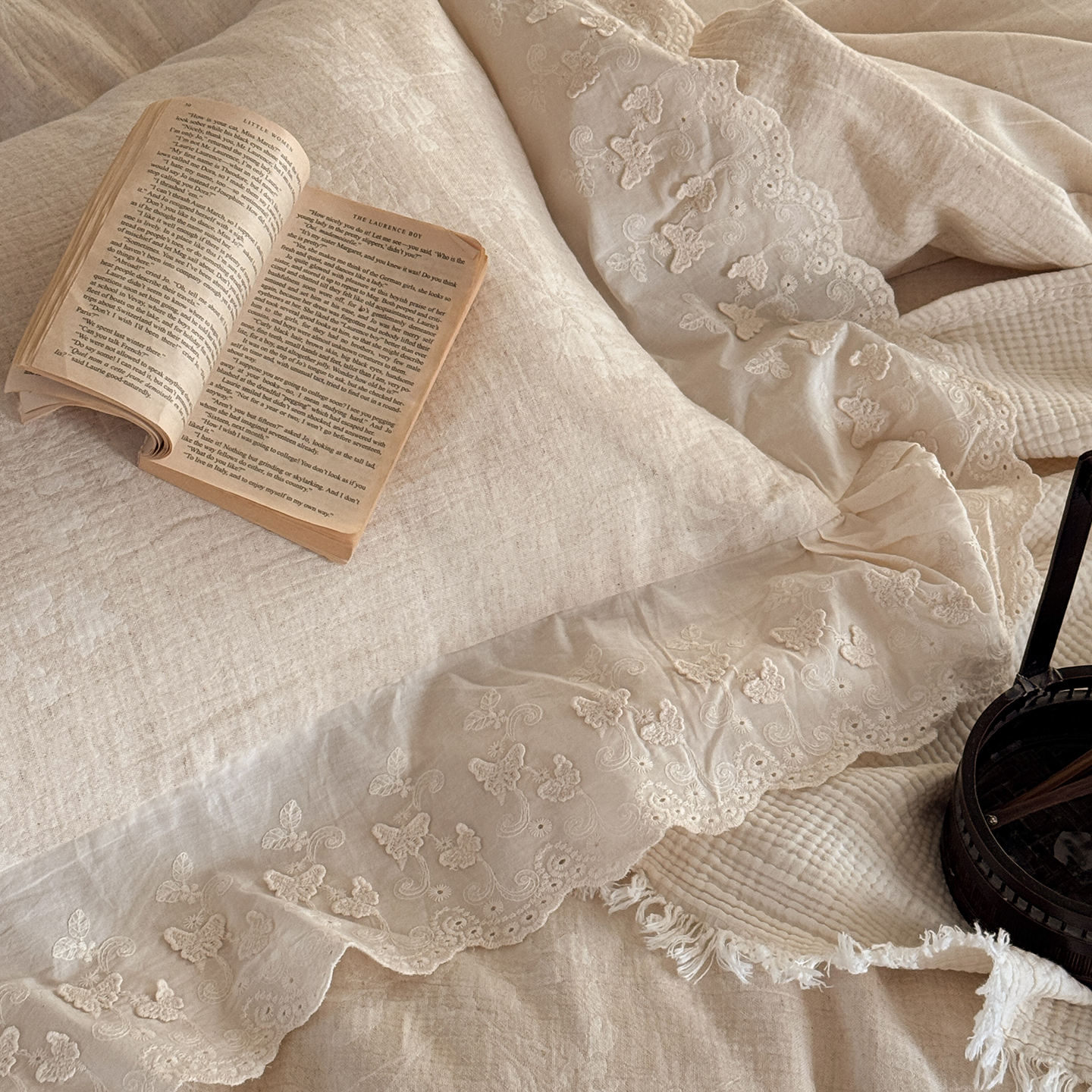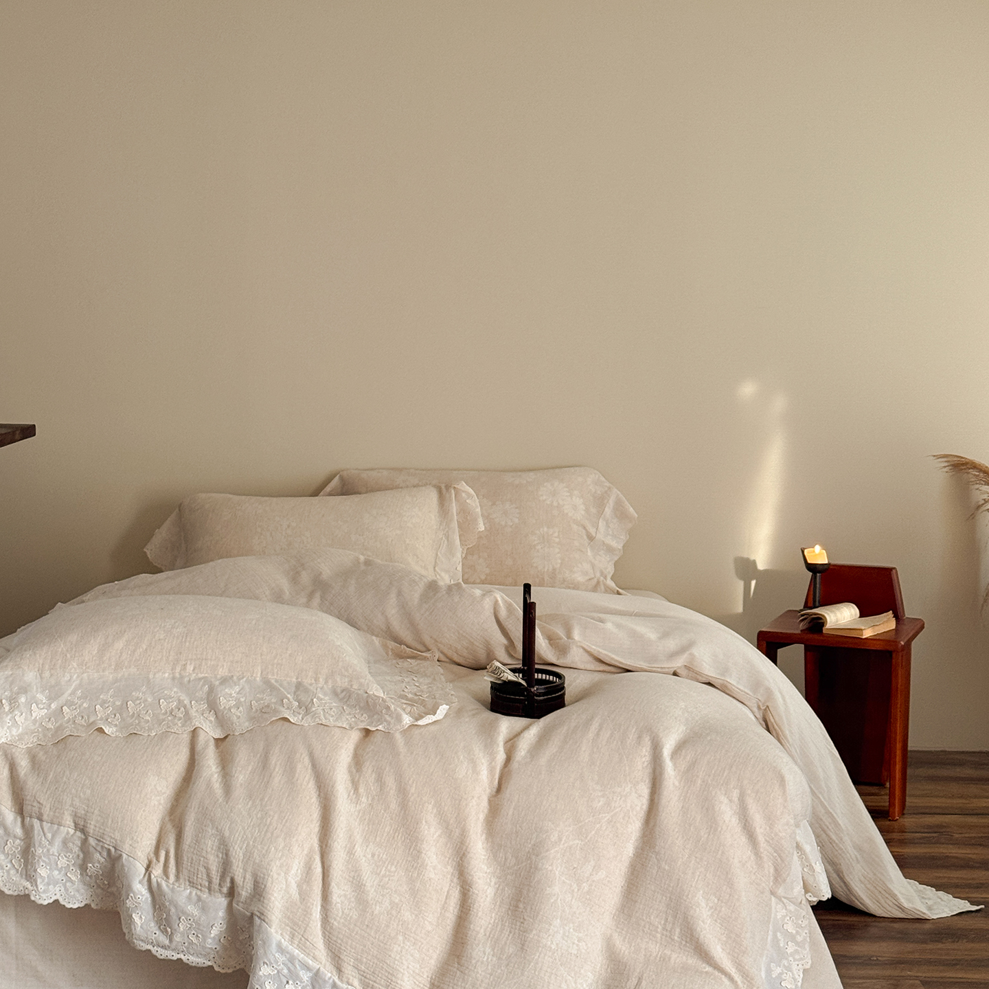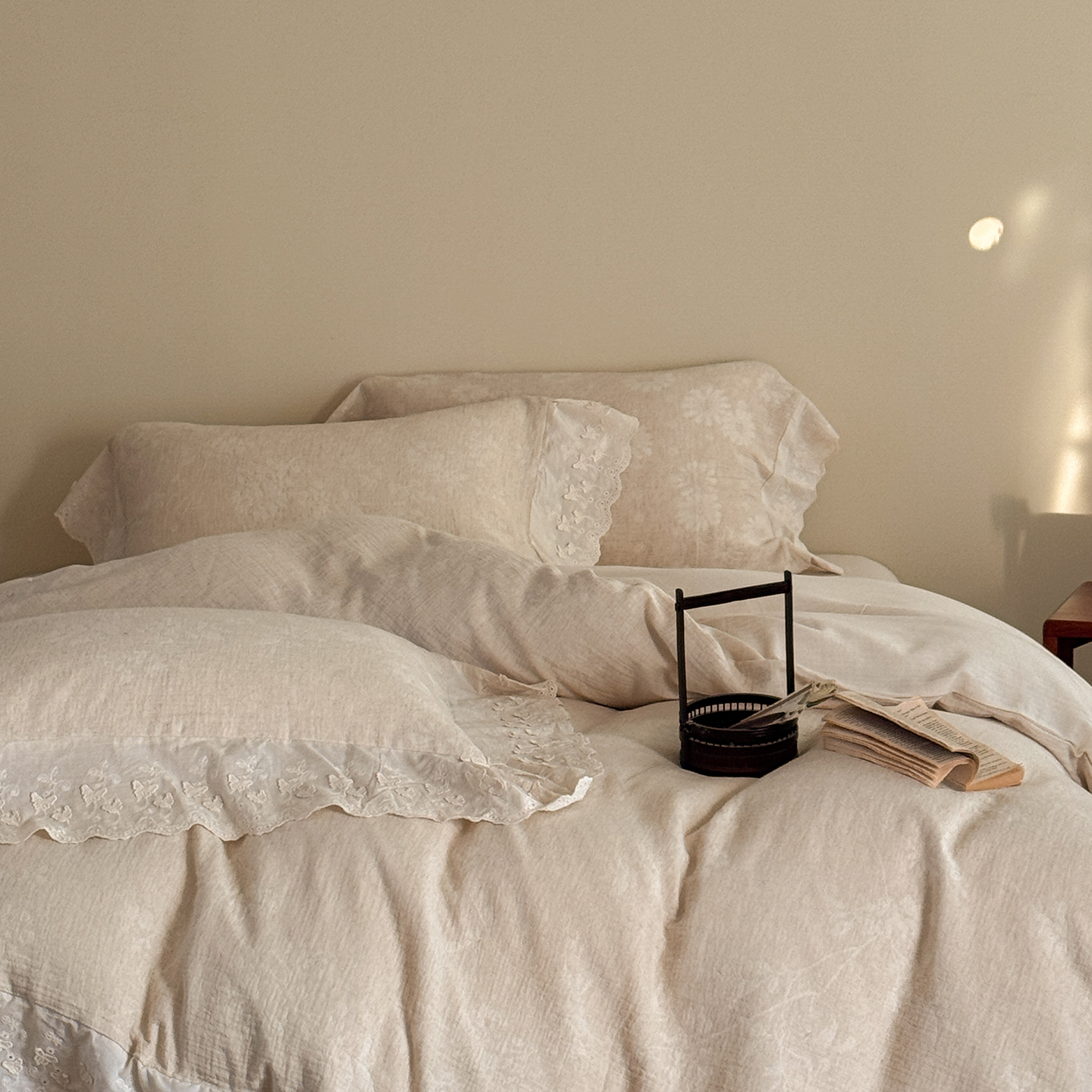 (总)爱丽丝 2026新款色织提花棉麻四件套-椿山集花边款