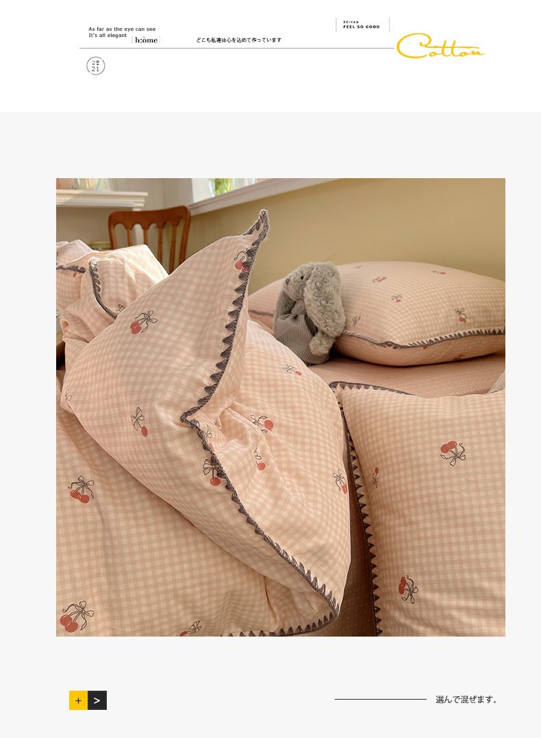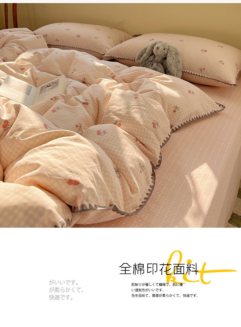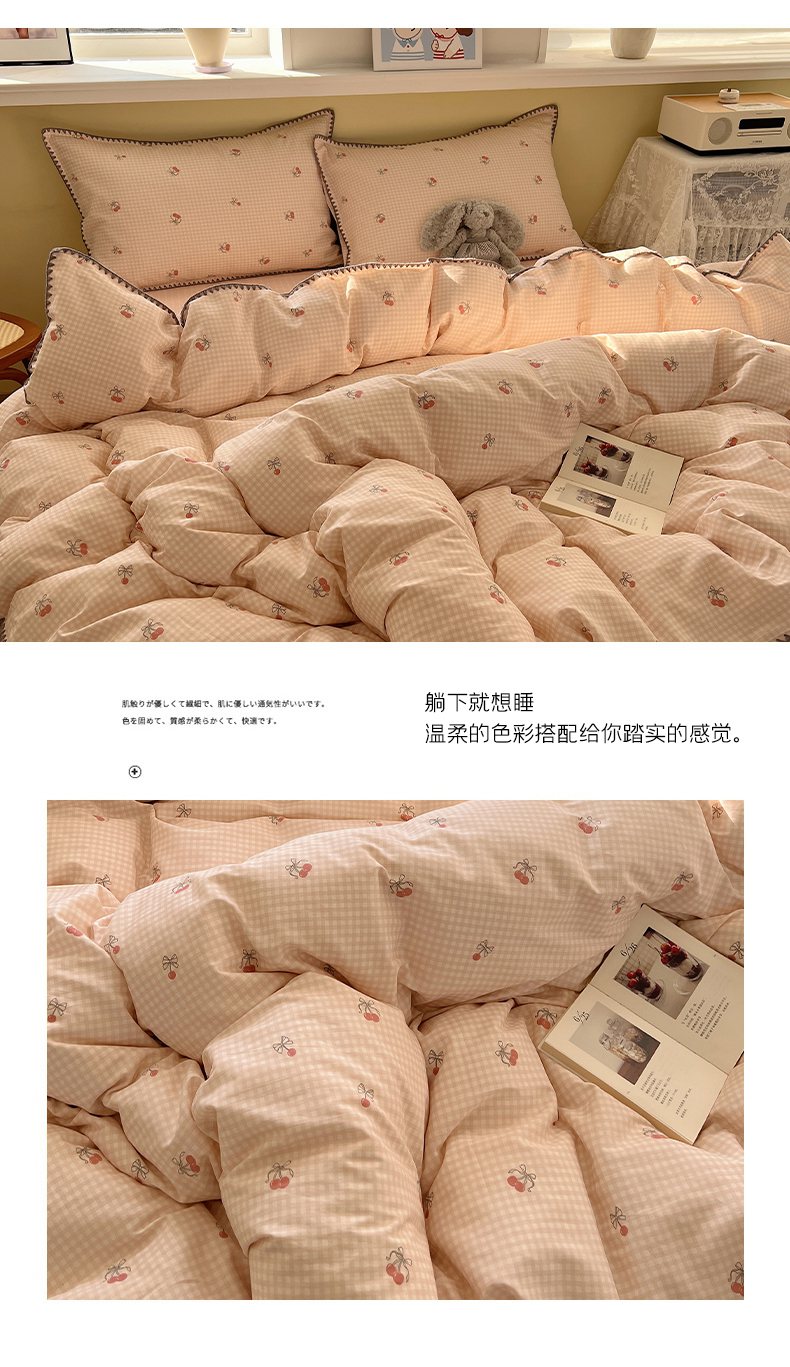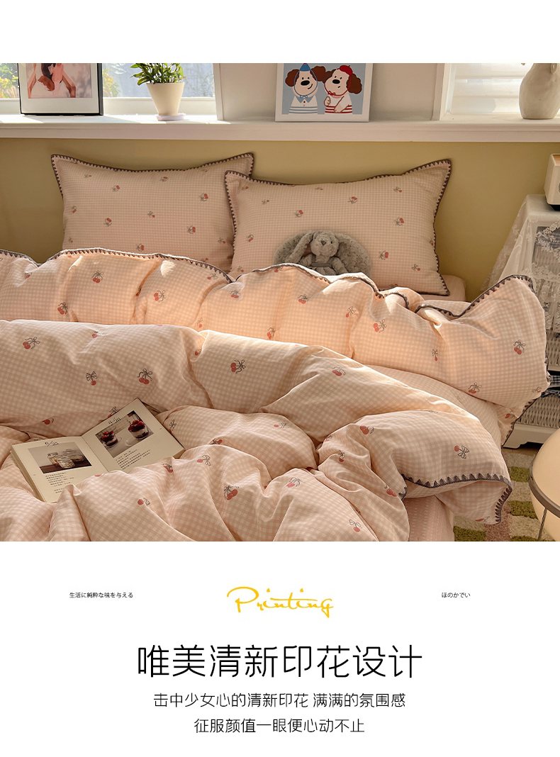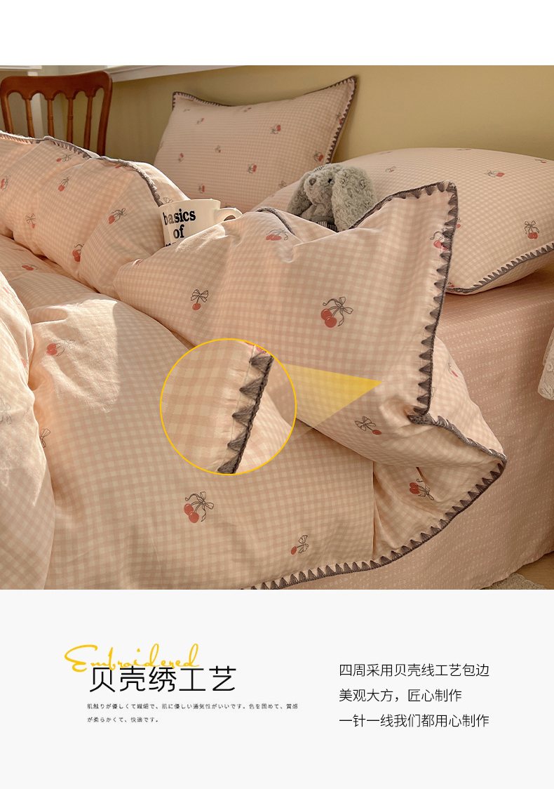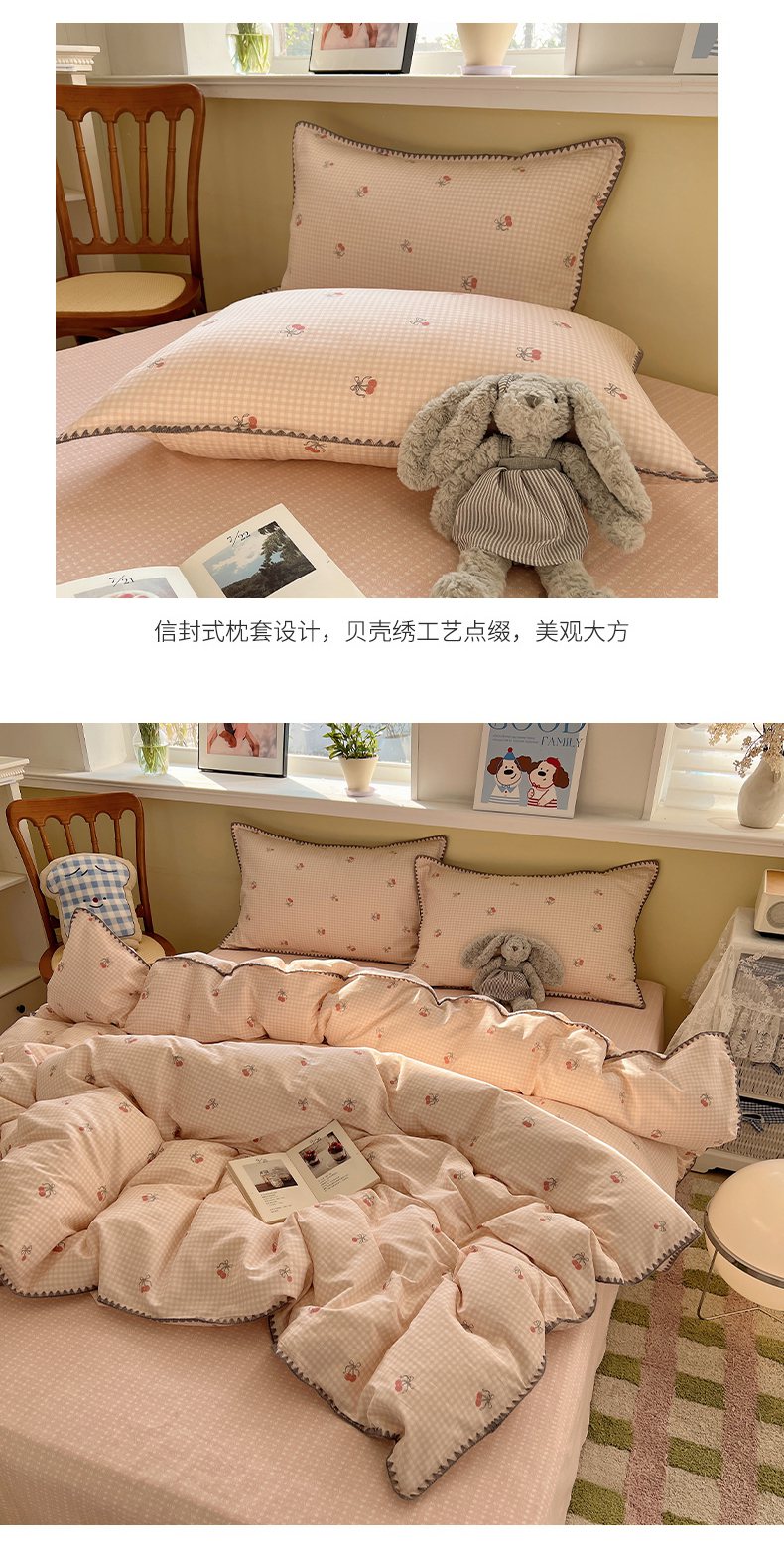 商品名称:瑞莱 2026新款全棉印花贝壳边四件套 樱桃快递