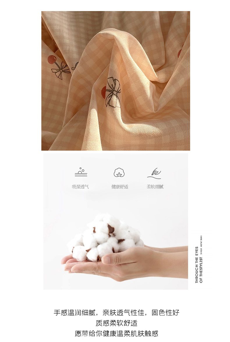 (总)瑞莱 2026新款A类全棉纯棉有氧双层纱四件套,白熊小姐,彩色木马,淡彩花笺,费尔岛小熊,焦糖奶汪-桔,焦糖奶汪-绿,萌星,苹果星星人,小樱桃,樱桃画报