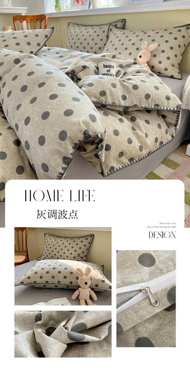 (总)瑞莱 2025新款水洗棉拼接工艺花边款四件套-波点蝴蝶结,波点蝴蝶结-蓝