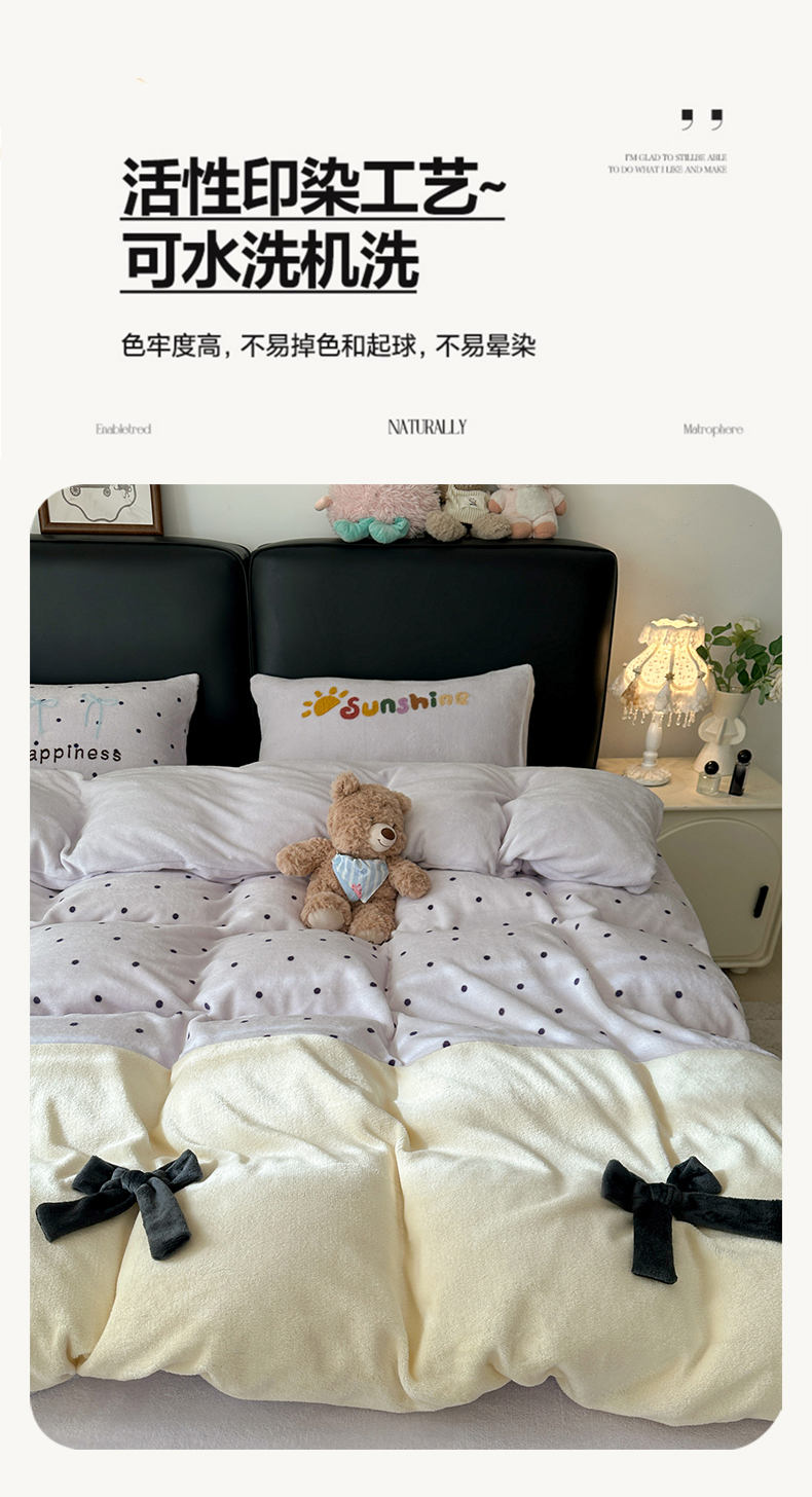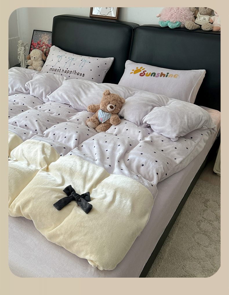 当前位置: 91家纺网 > 商品网购 > 床品套件 > 四件套 > 牛奶绒四件套 > 子钦家纺 2025秋冬新款加厚牛奶绒蝴蝶结公主风毛巾绣床单床笠四件套 牛奶绒公主风-紫波点