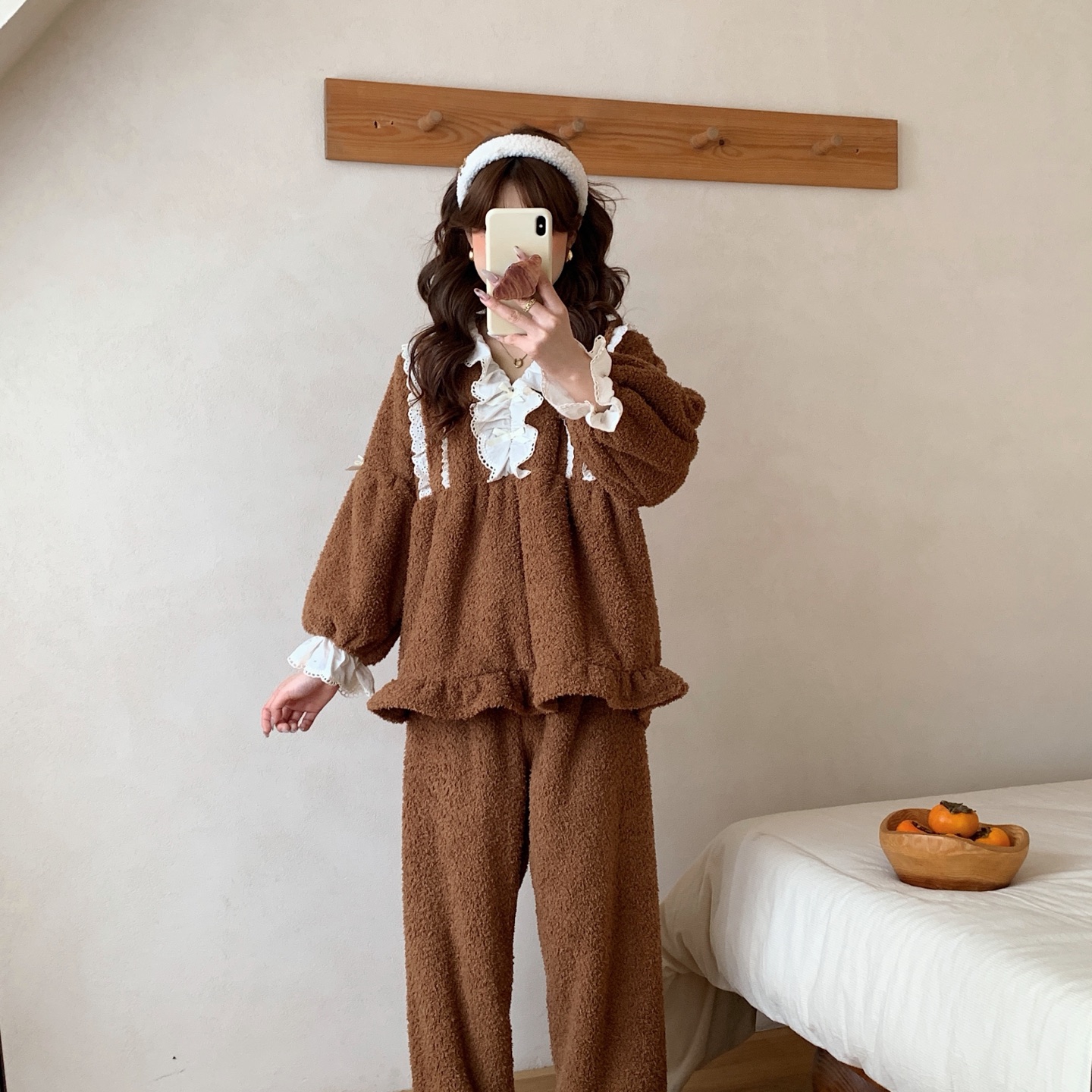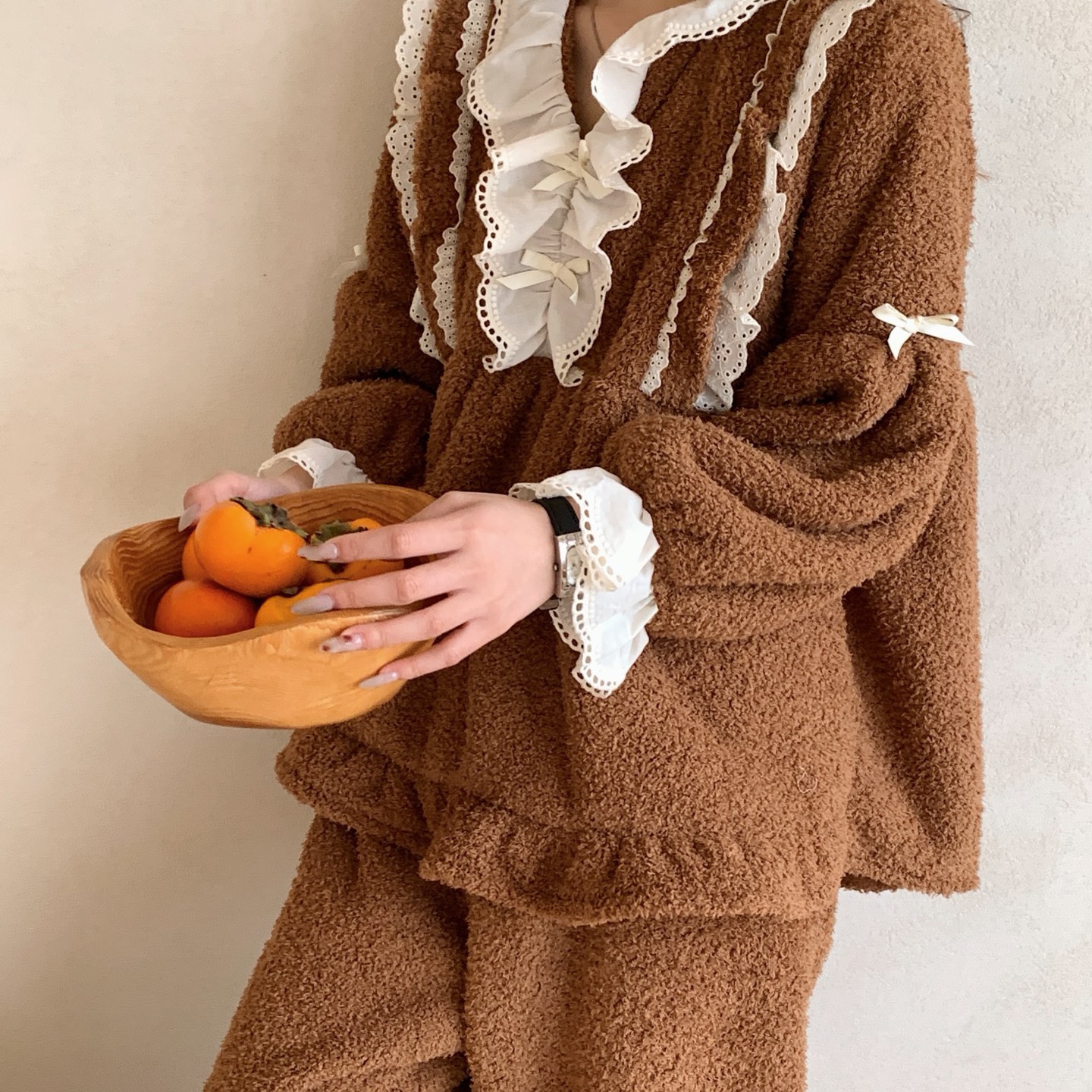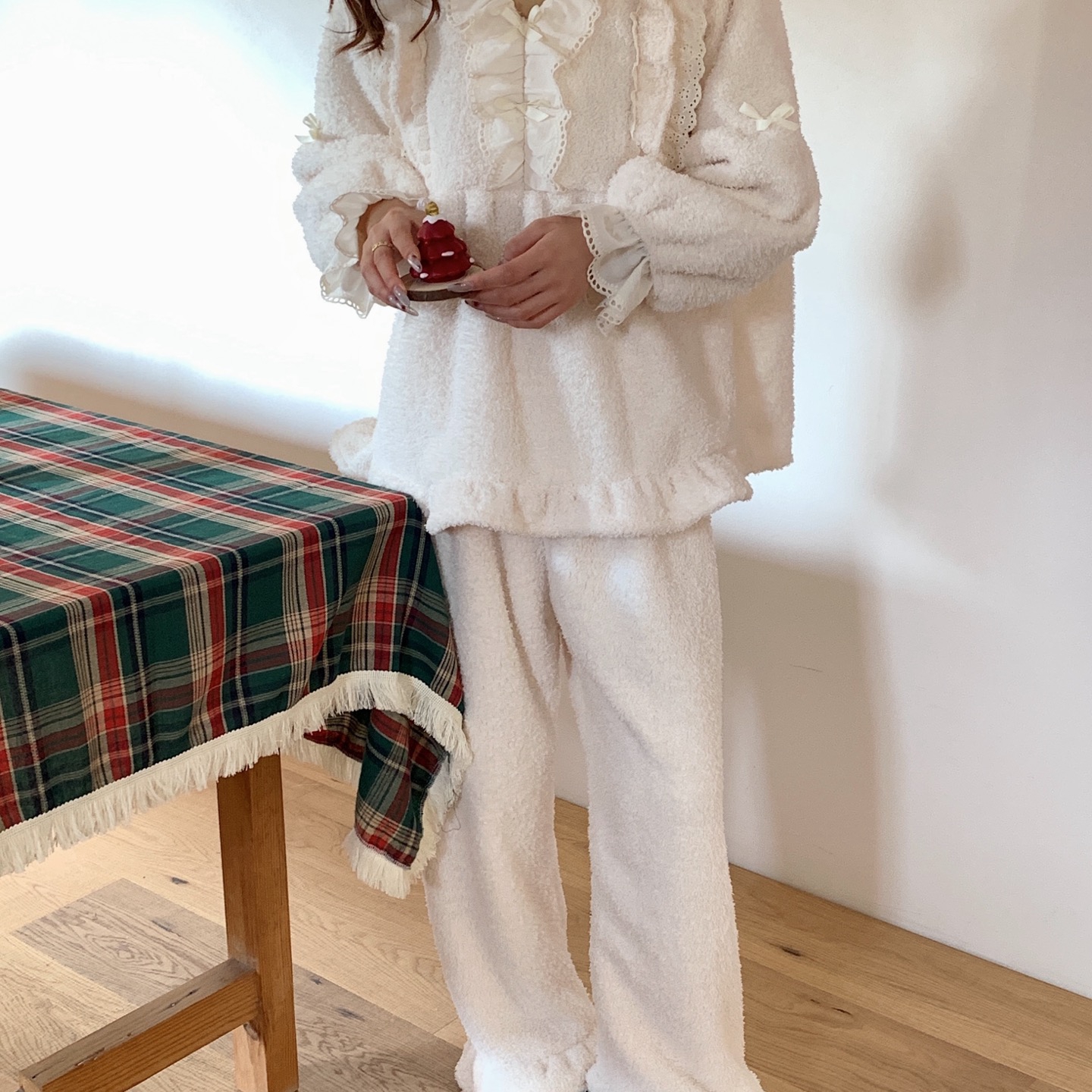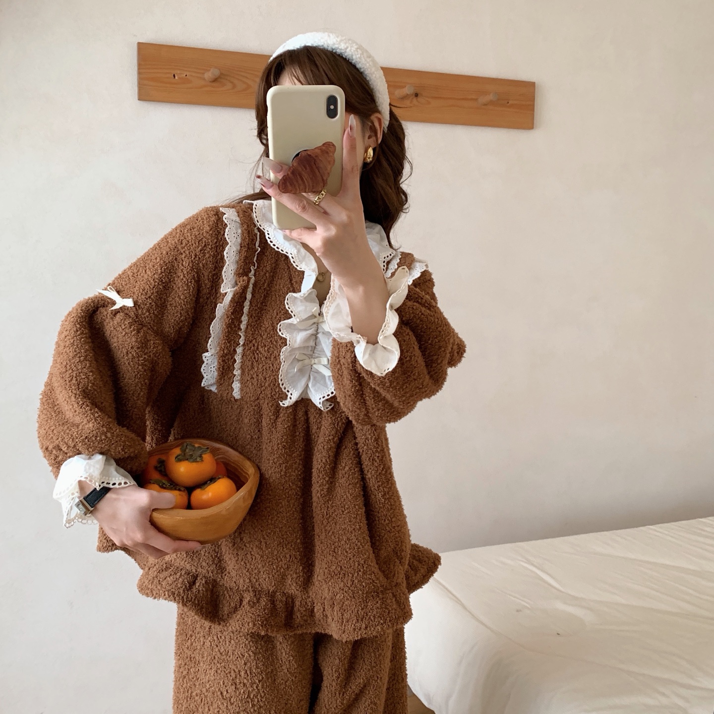 当前位置: 91家纺网 > 商品网购 > 居家日用 > 睡衣/家居服套装 > (总)妍景家居生活馆 2025新款韩系蕾丝花边甜美套装