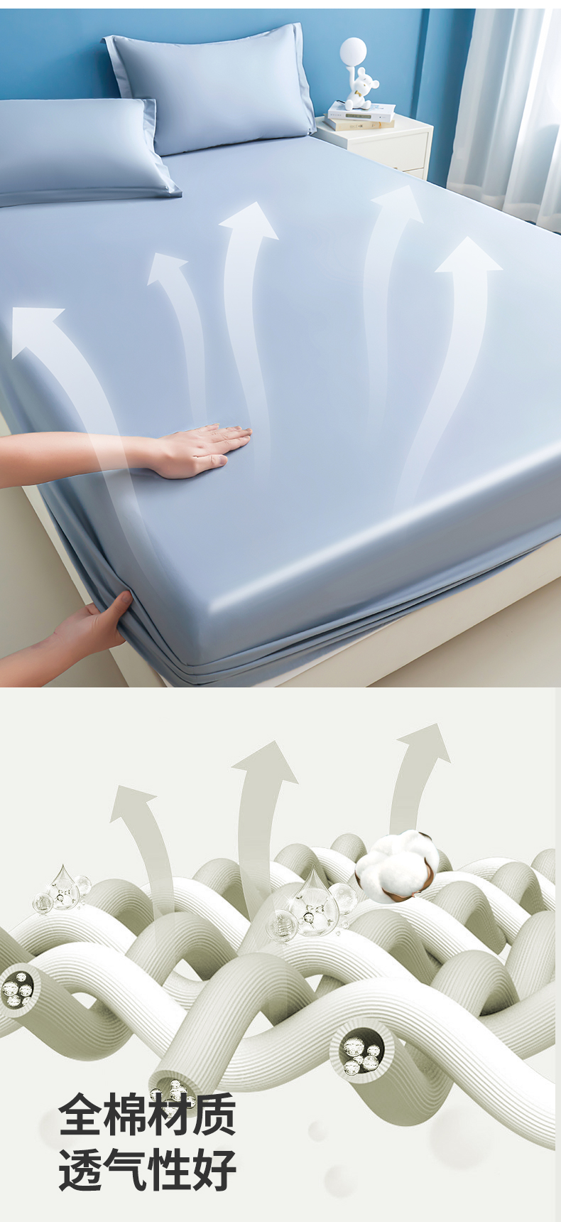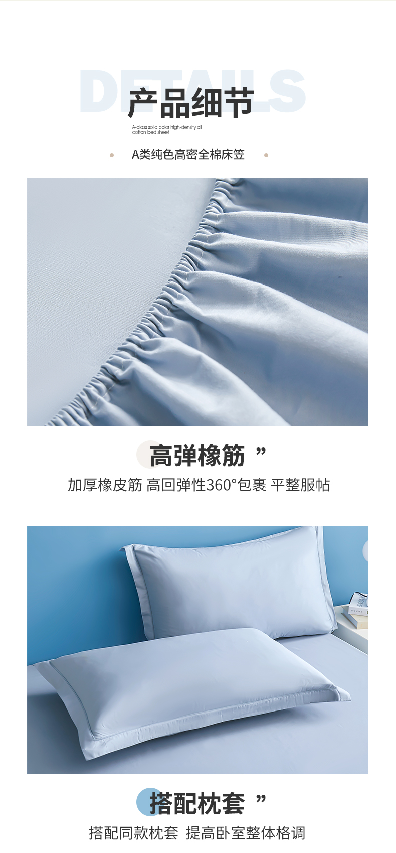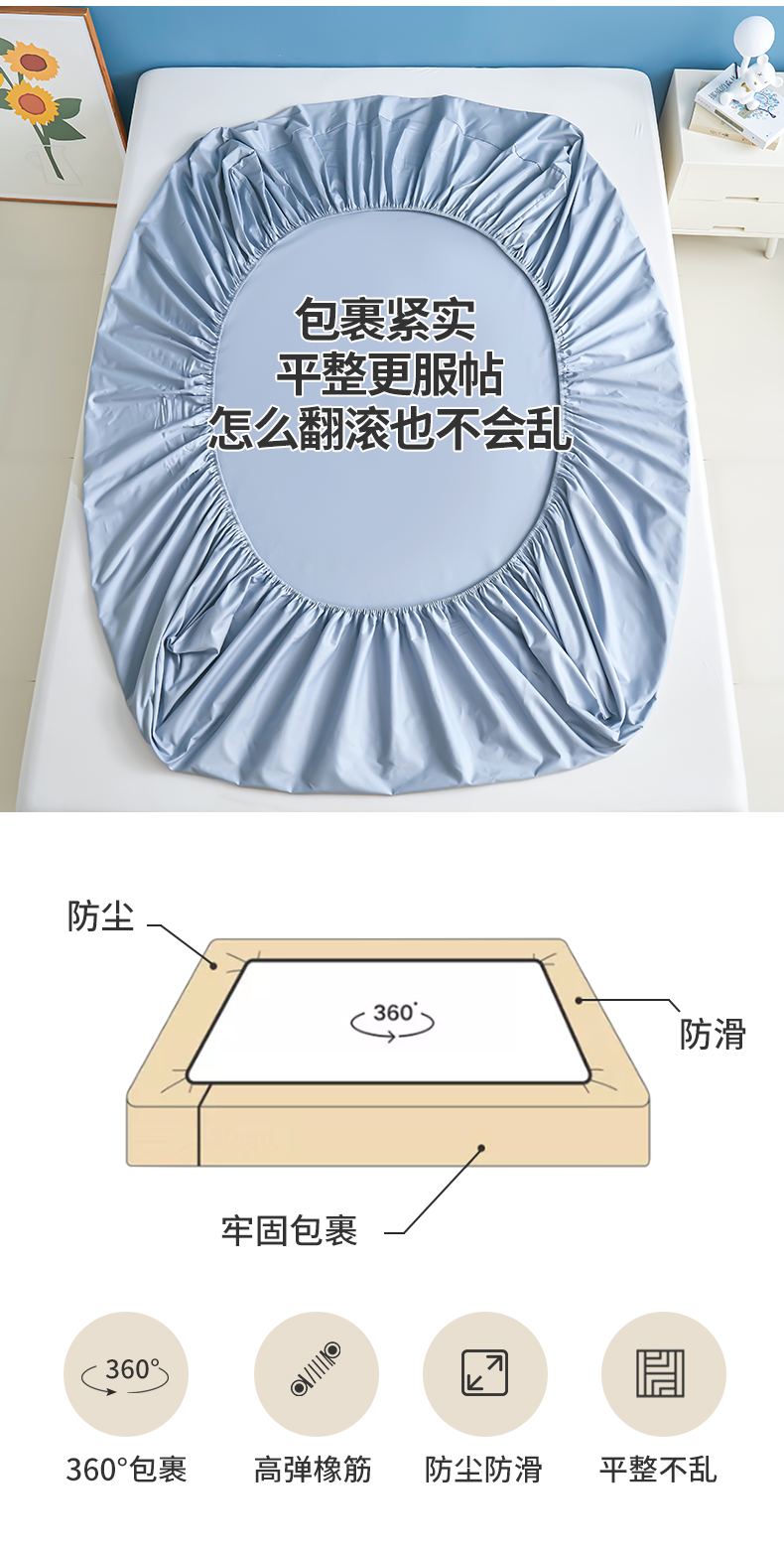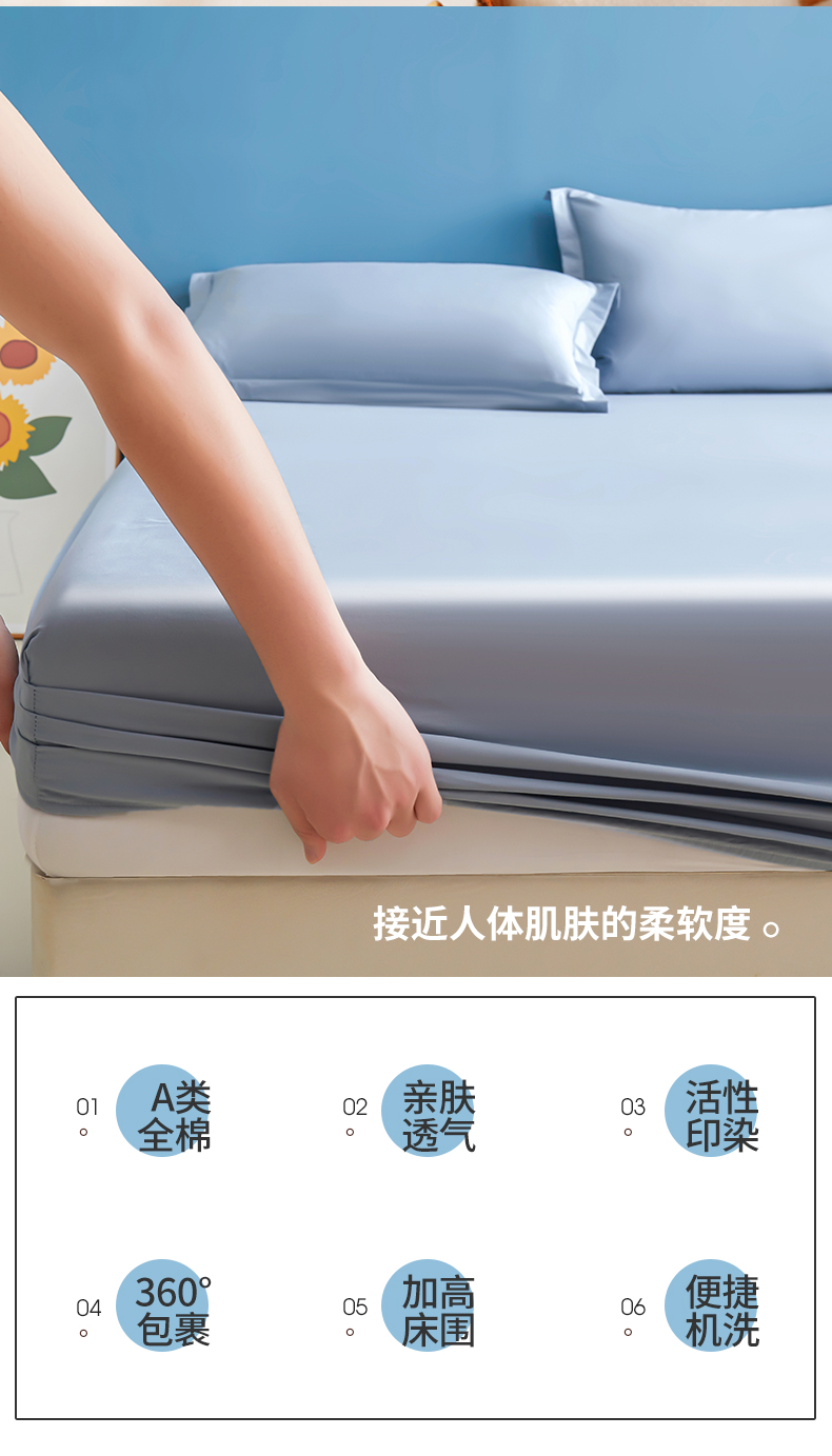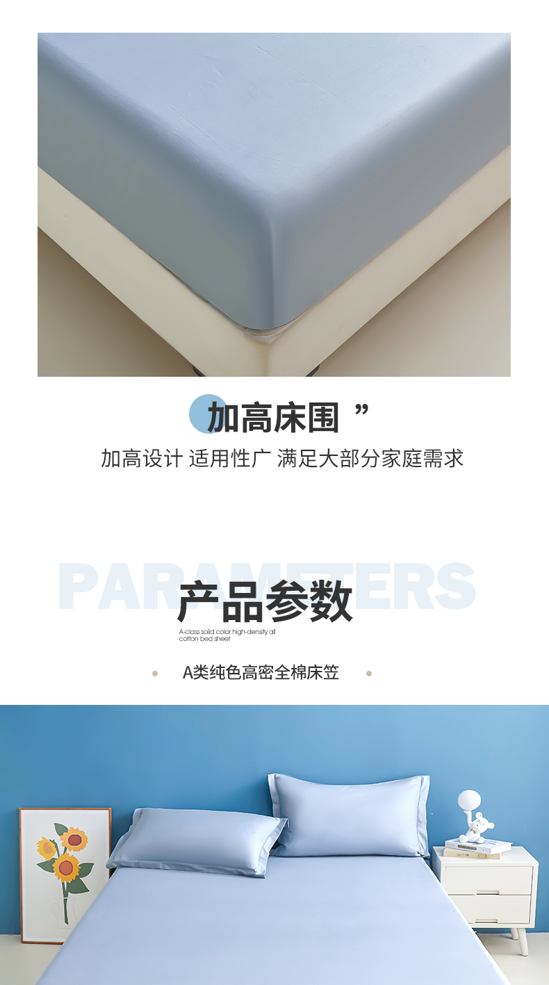 • 91家纺网 家纺一手货源 找家纺 名优家纺 2026新款纯色高密全棉纯棉床笠单床笠床笠单件 天空蓝