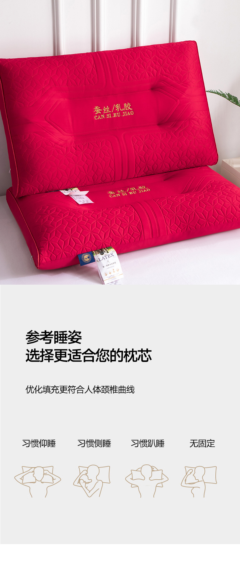(总)仁宇枕业 2025新款新品大红婚庆莱赛尔蚕丝乳胶功能枕头枕芯大豆乳胶枕头枕芯