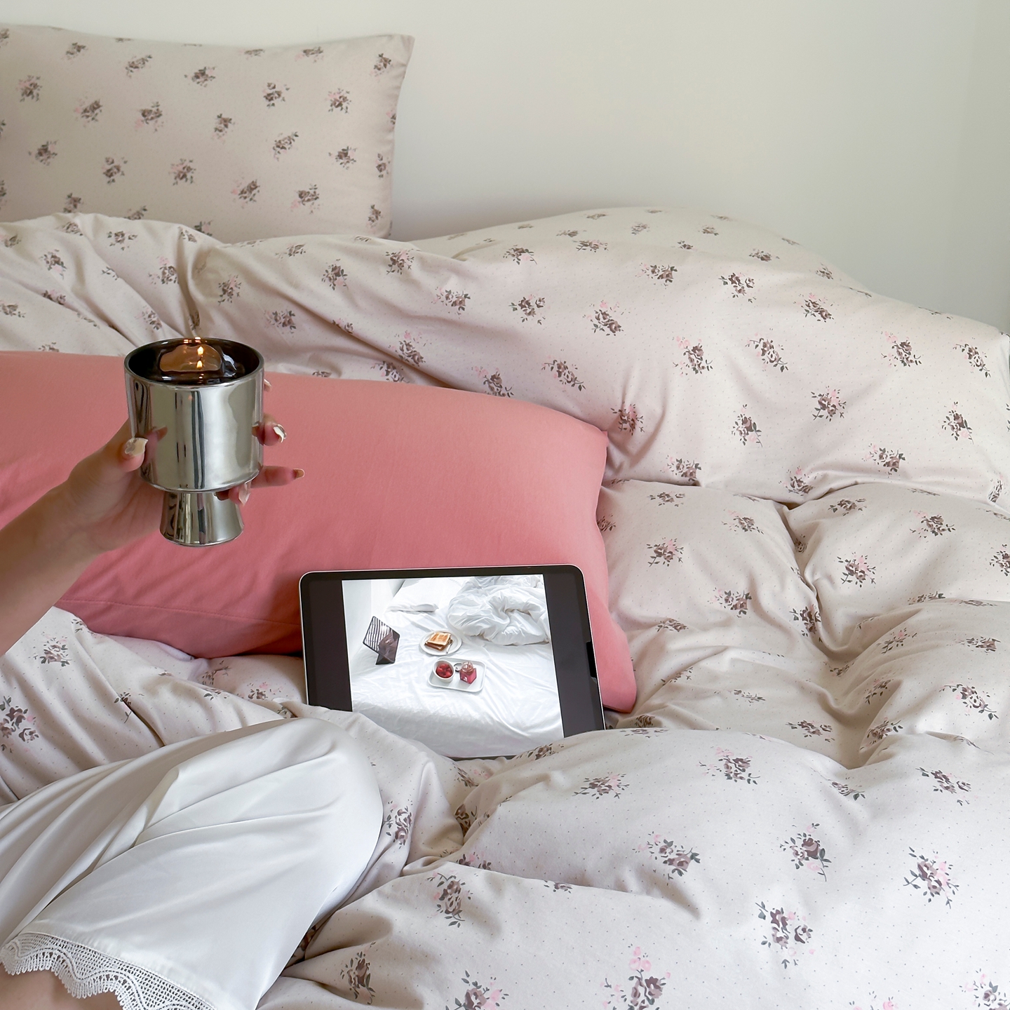 (总)爱丽丝 2026新款色织提花棉麻四件套-醒时见春花边款,醒时见春花边款