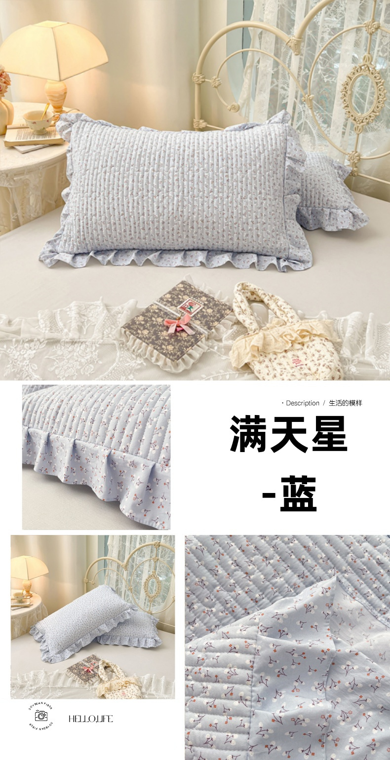 • 91家纺网 家纺一手货源 找家纺 梦舒羽 2026新款A类云朵棉夹棉花边枕套宿舍单人一只装枕芯内胆套-单人枕套 满天星-蓝(花边夹棉)