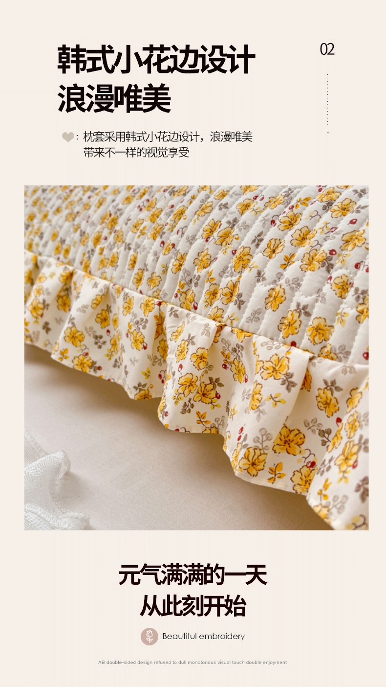 • 91家纺网 家纺一手货源 找家纺 圣比熊 2026新款A类云朵棉夹棉花边枕套宿舍情侣双人加长枕芯内胆套-双人枕套 春日暖阳(花边夹棉)