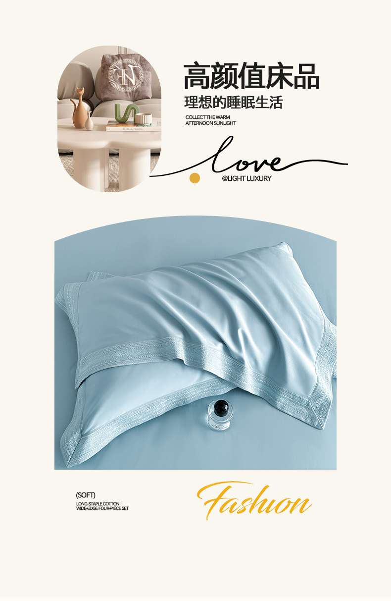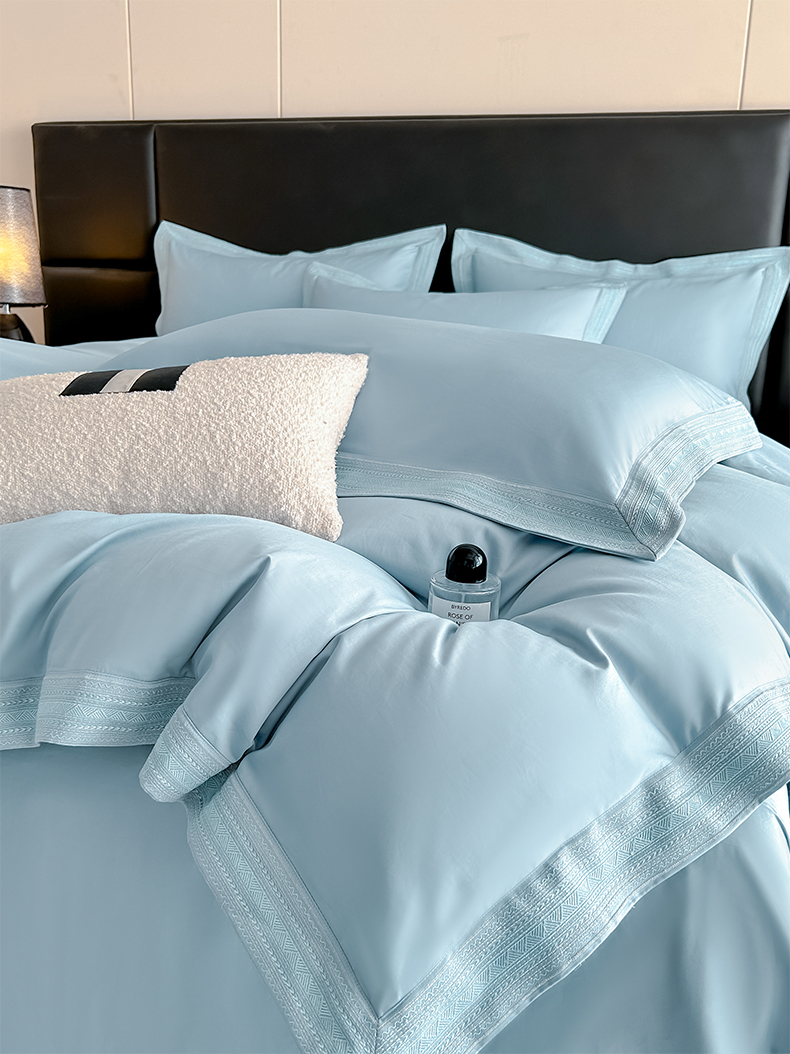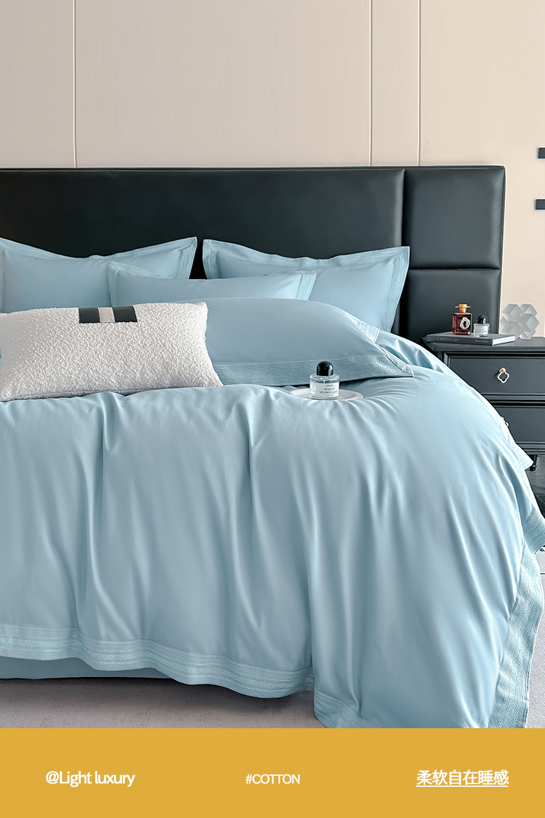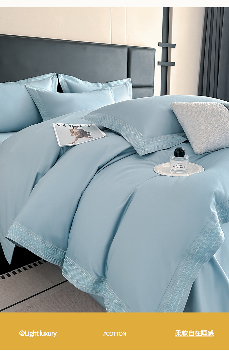 当前位置: 91家纺网 > 商品网购 > 床品套件 > 四件套 > 长绒棉四件套 > 置顶家纺 2025新款50双股支长绒棉纯棉宽边四件套-米西雅 米西雅-天蓝