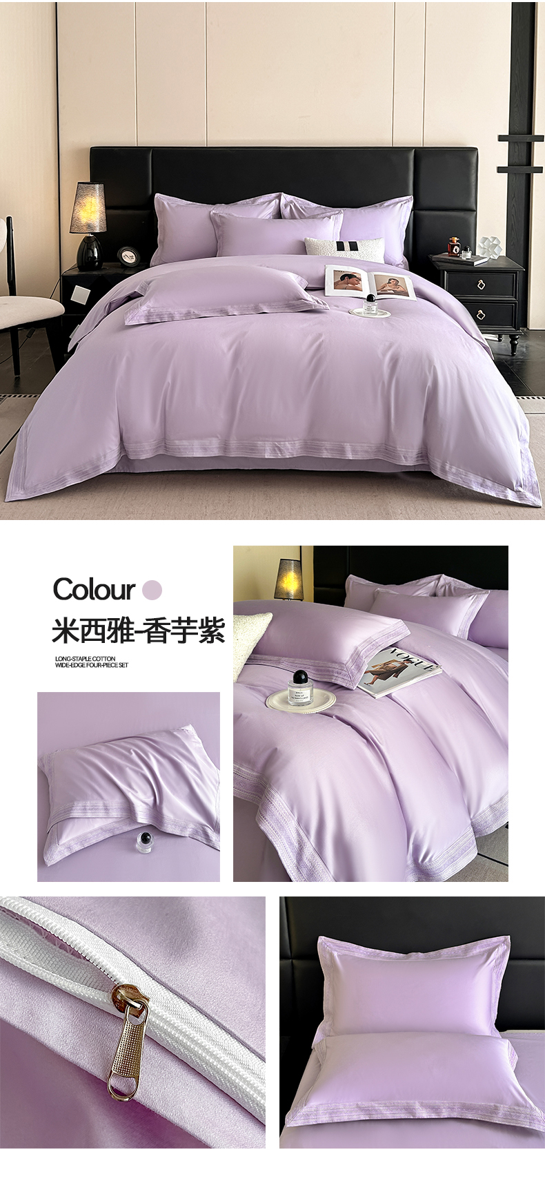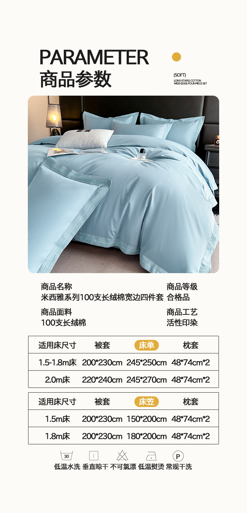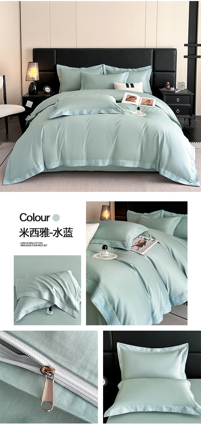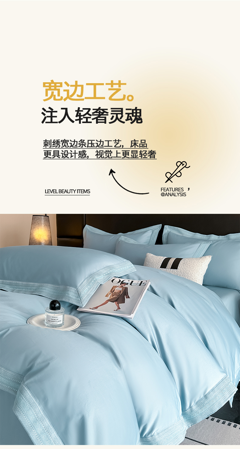 当前位置: 91家纺网 > 商品网购 > 床品套件 > 四件套 > 长绒棉四件套 > 置顶家纺 2025新款50双股支长绒棉纯棉宽边四件套-米西雅 米西雅-天蓝