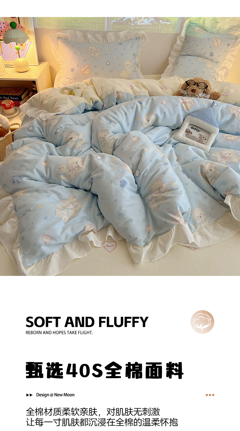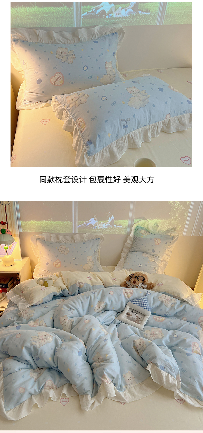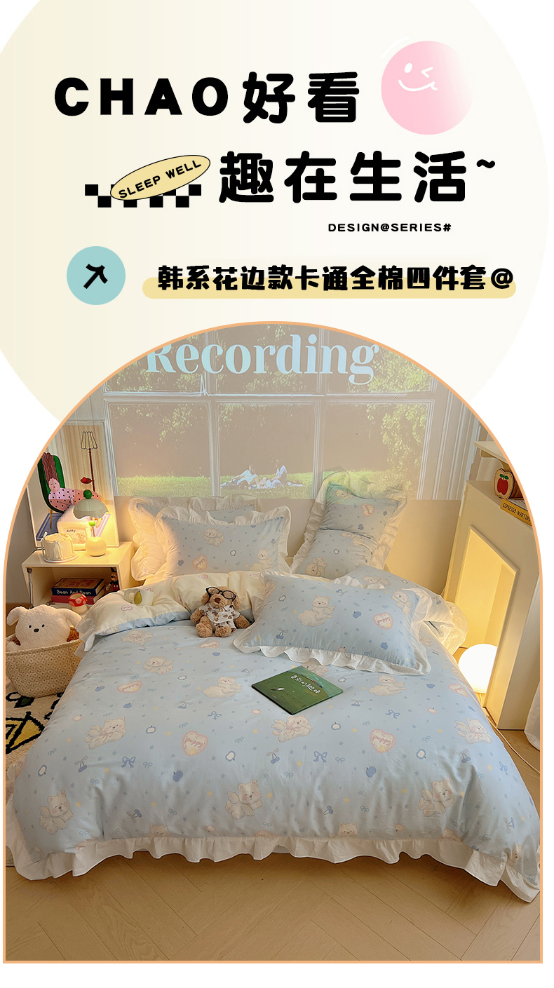 六巷胡同 2026春夏新款韩系花边款卡通全棉四件套(第二系列)风格一 花边萌趣小飞犬