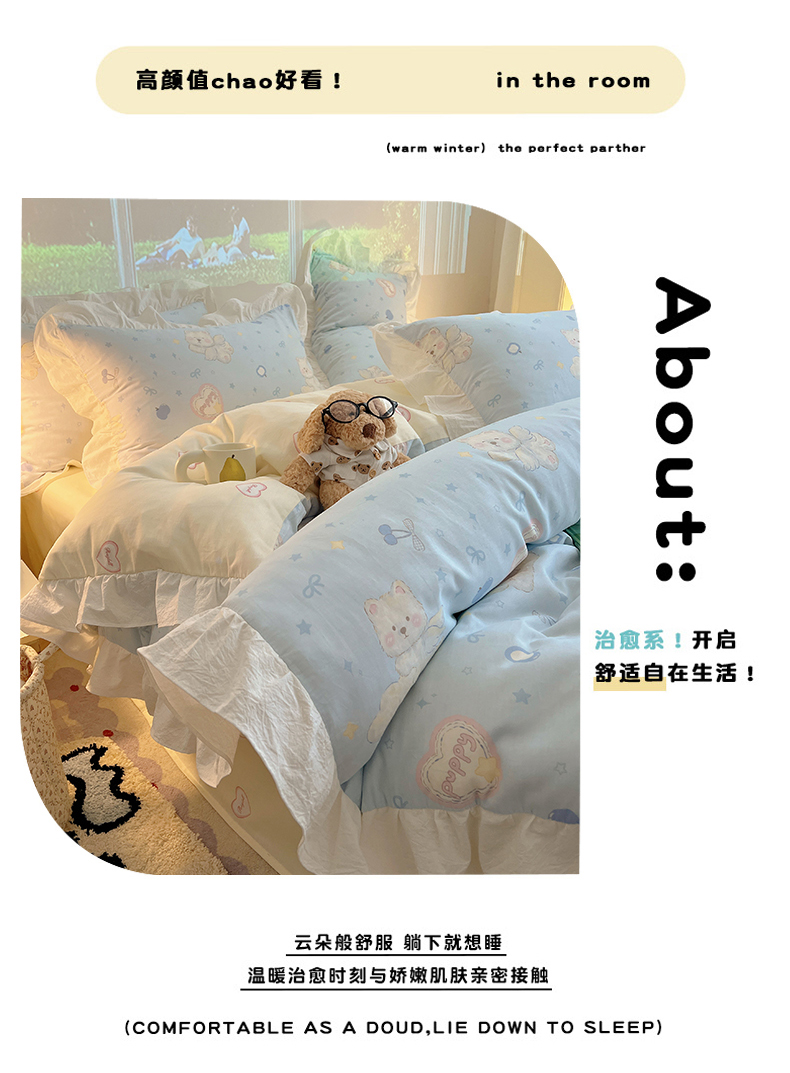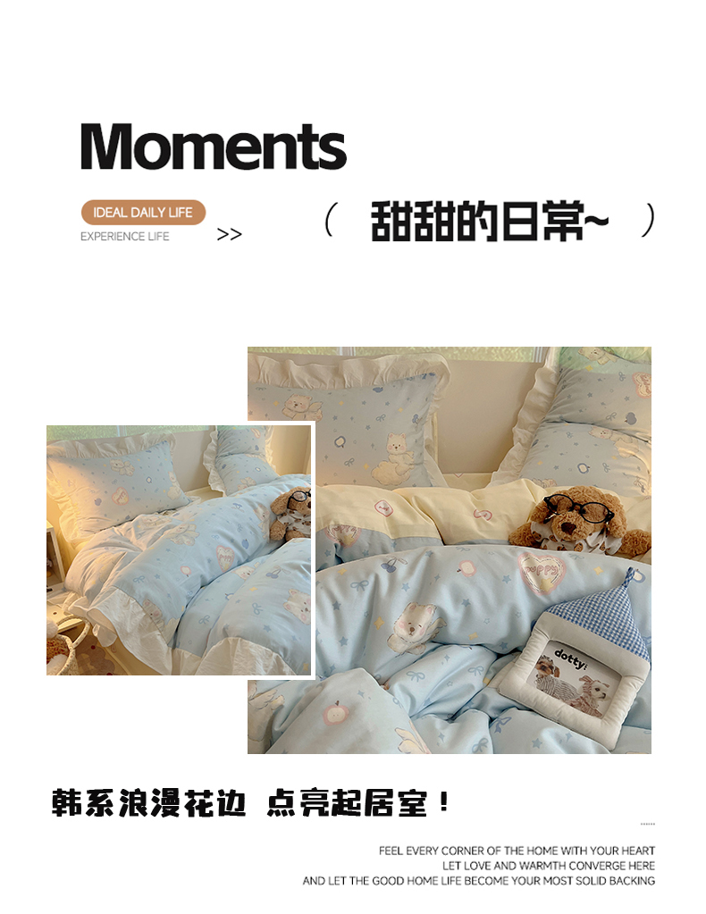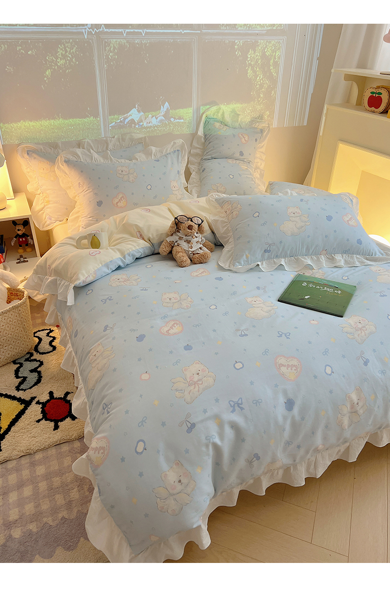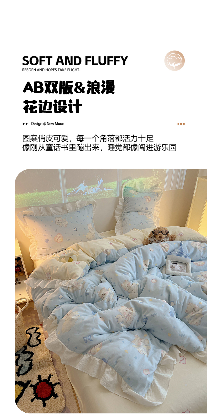 六巷胡同 2026春夏新款韩系花边款卡通全棉四件套(第二系列)风格一 花边萌趣小飞犬