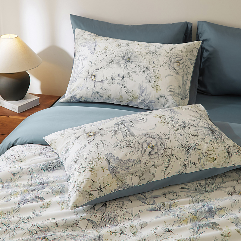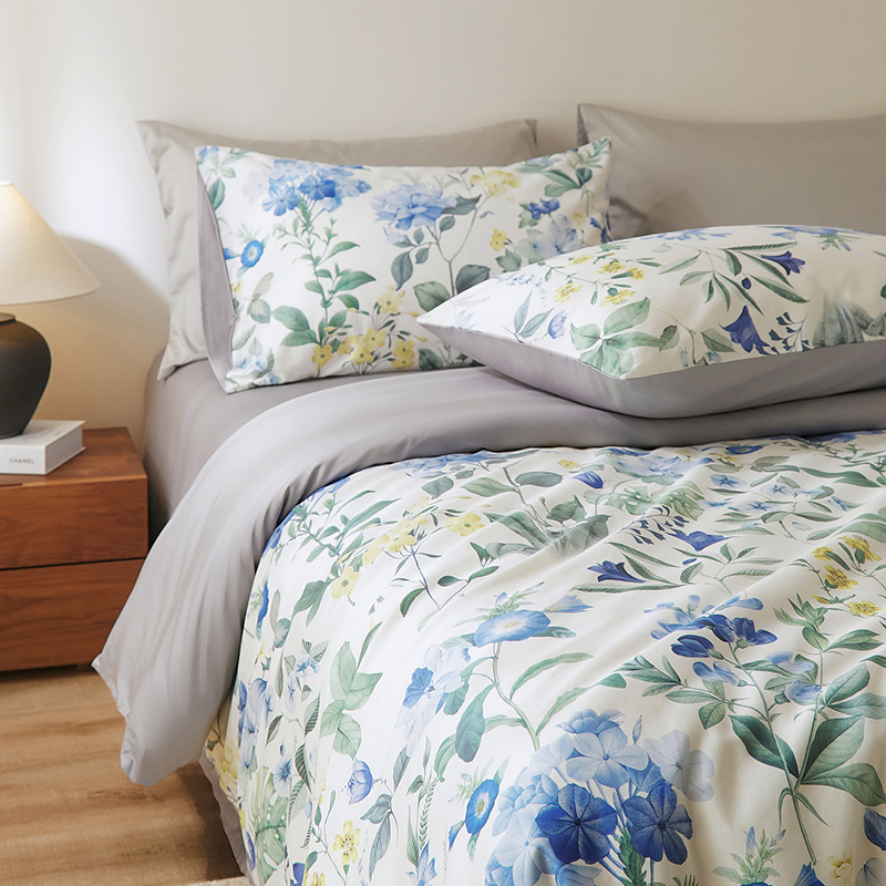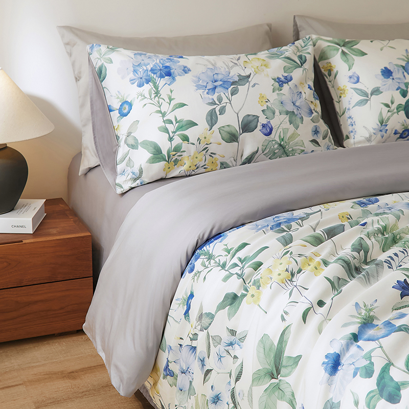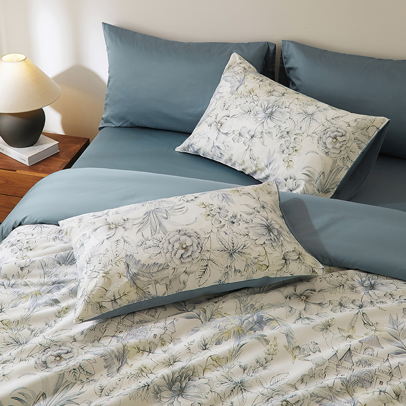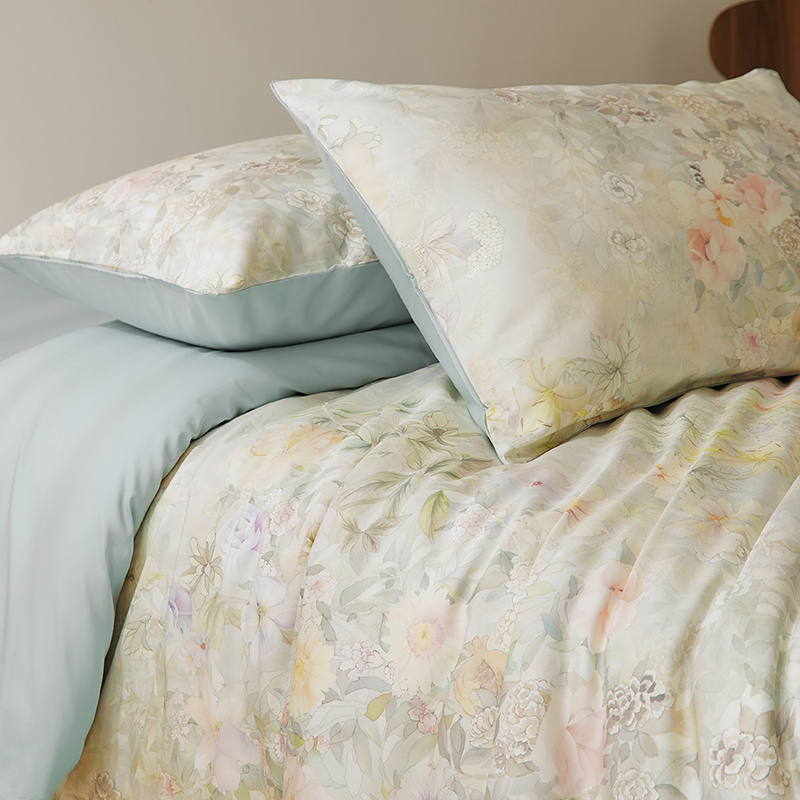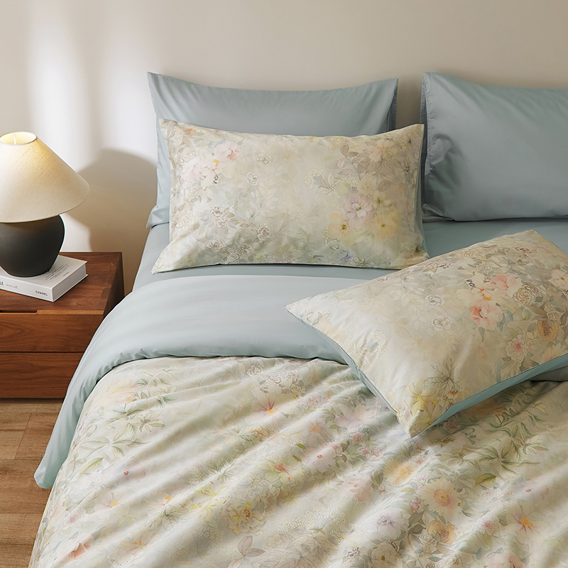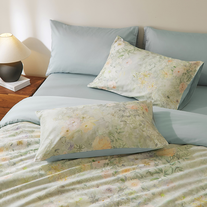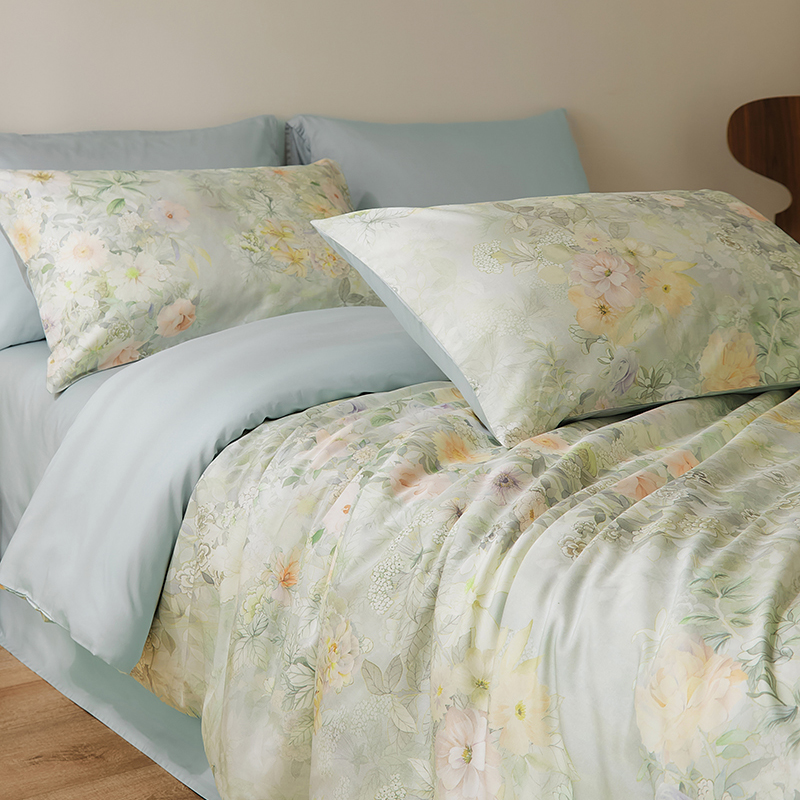 欣宜家纺 2025新款60支长绒棉数码印花系列四件套 仟云绿