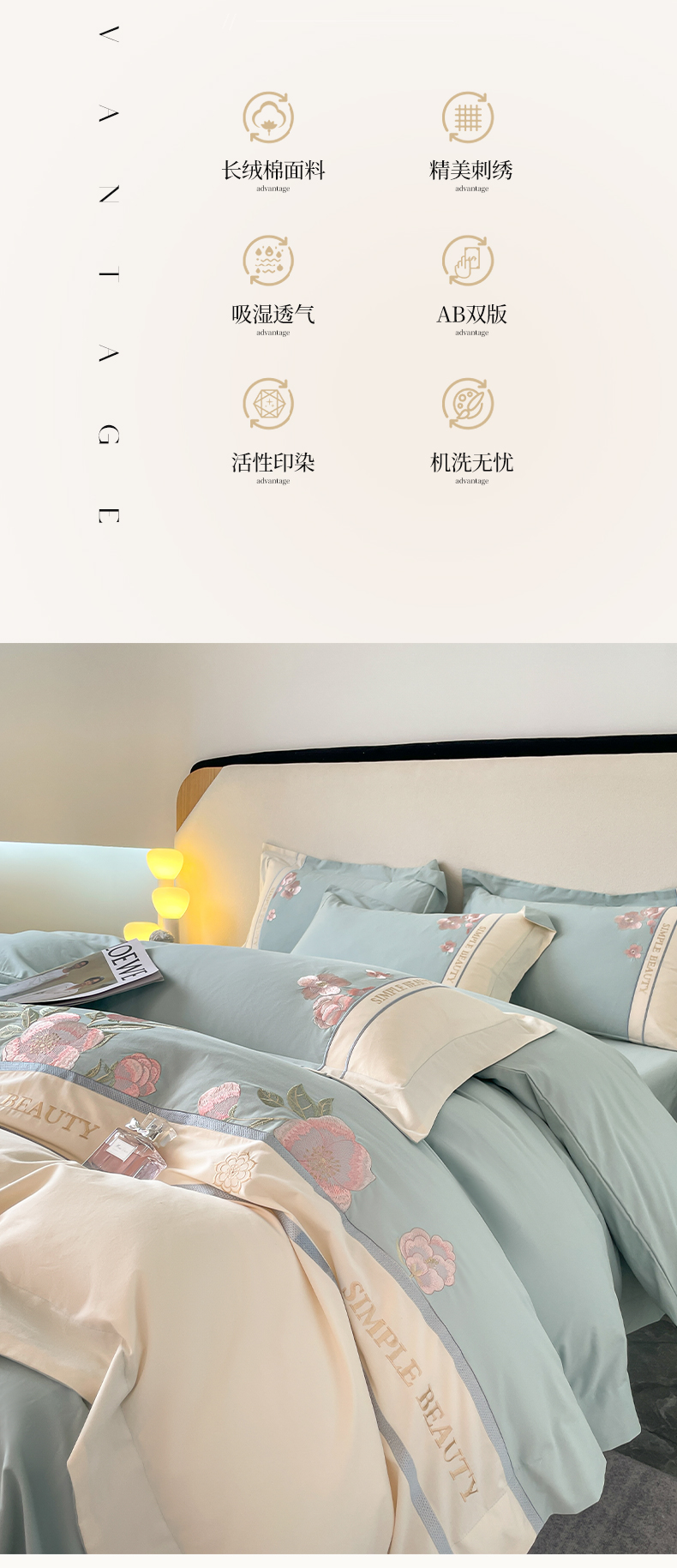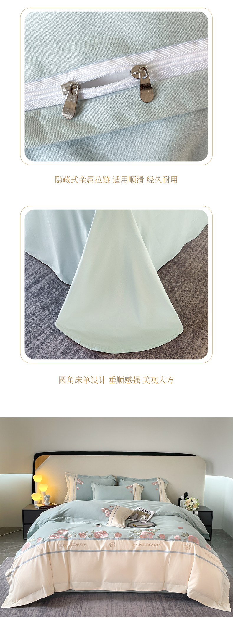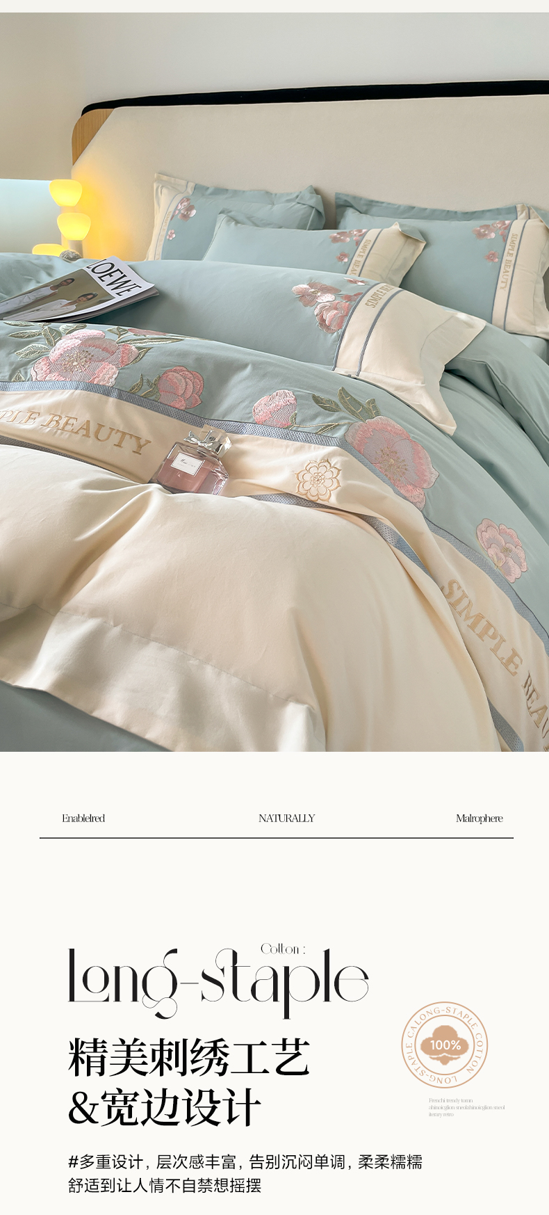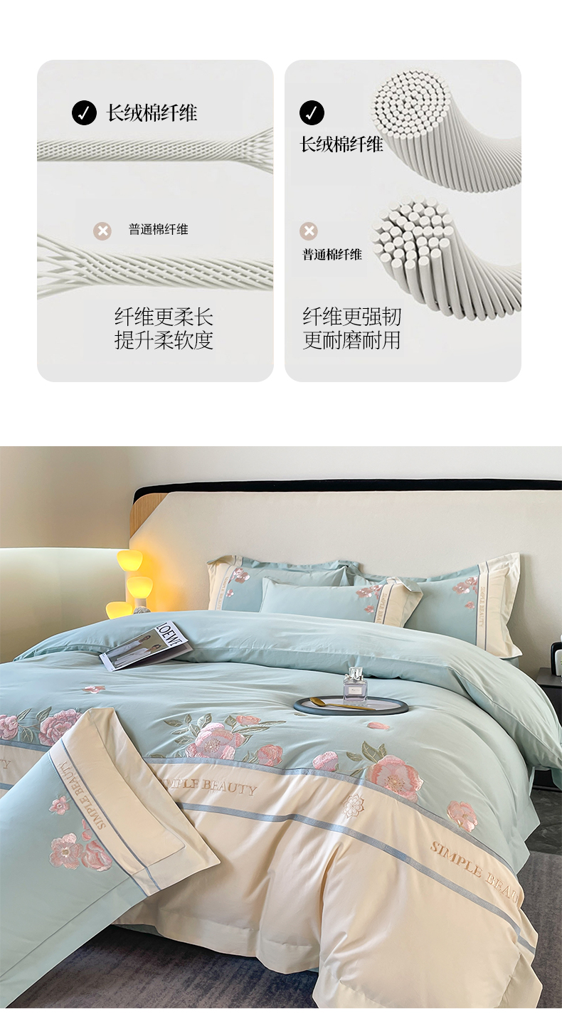 (总)欣宜家纺 2026春夏新款60支A类新疆长绒棉刺绣轻奢风四件套,樱花-白粉,樱花-清香绿,樱花-少女粉,樱花-天天蓝,樱花-香芋紫