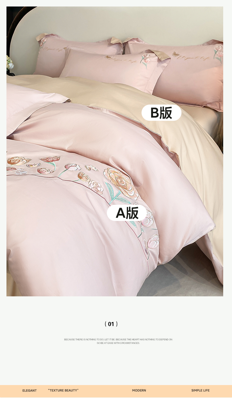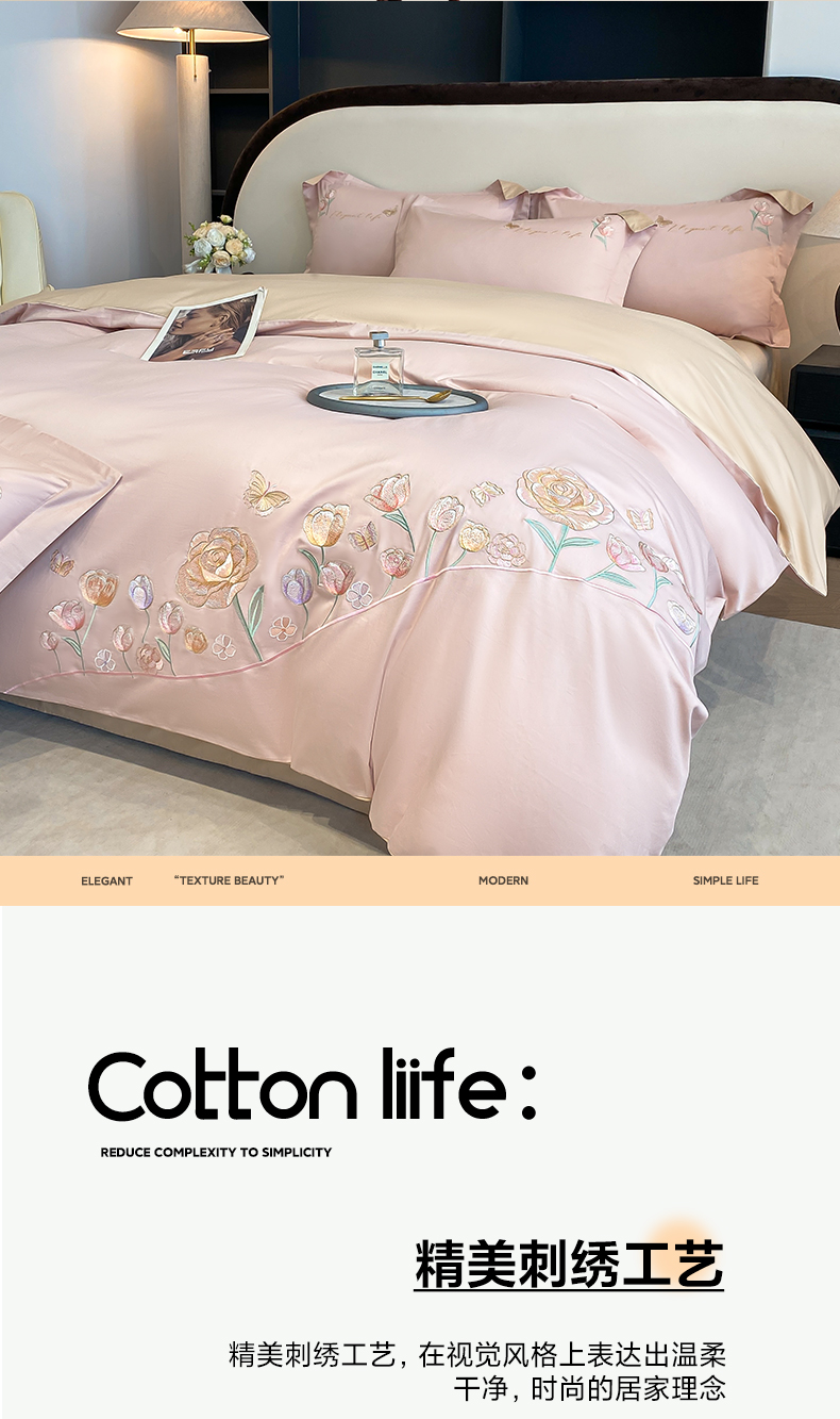 (总)欣宜家纺 2026春夏新款60支A类新疆长绒棉刺绣轻奢风四件套,樱花-白粉,樱花-清香绿,樱花-少女粉,樱花-天天蓝,樱花-香芋紫