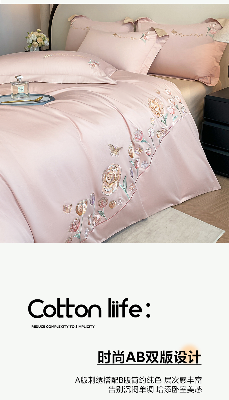 (总)欣宜家纺 2026春夏新款A类60支长绒棉刺绣四件套--蝶纷飞系列,蝶纷飞-粉,蝶纷飞-紫,蝶纷飞-蓝,蝶纷飞-绿