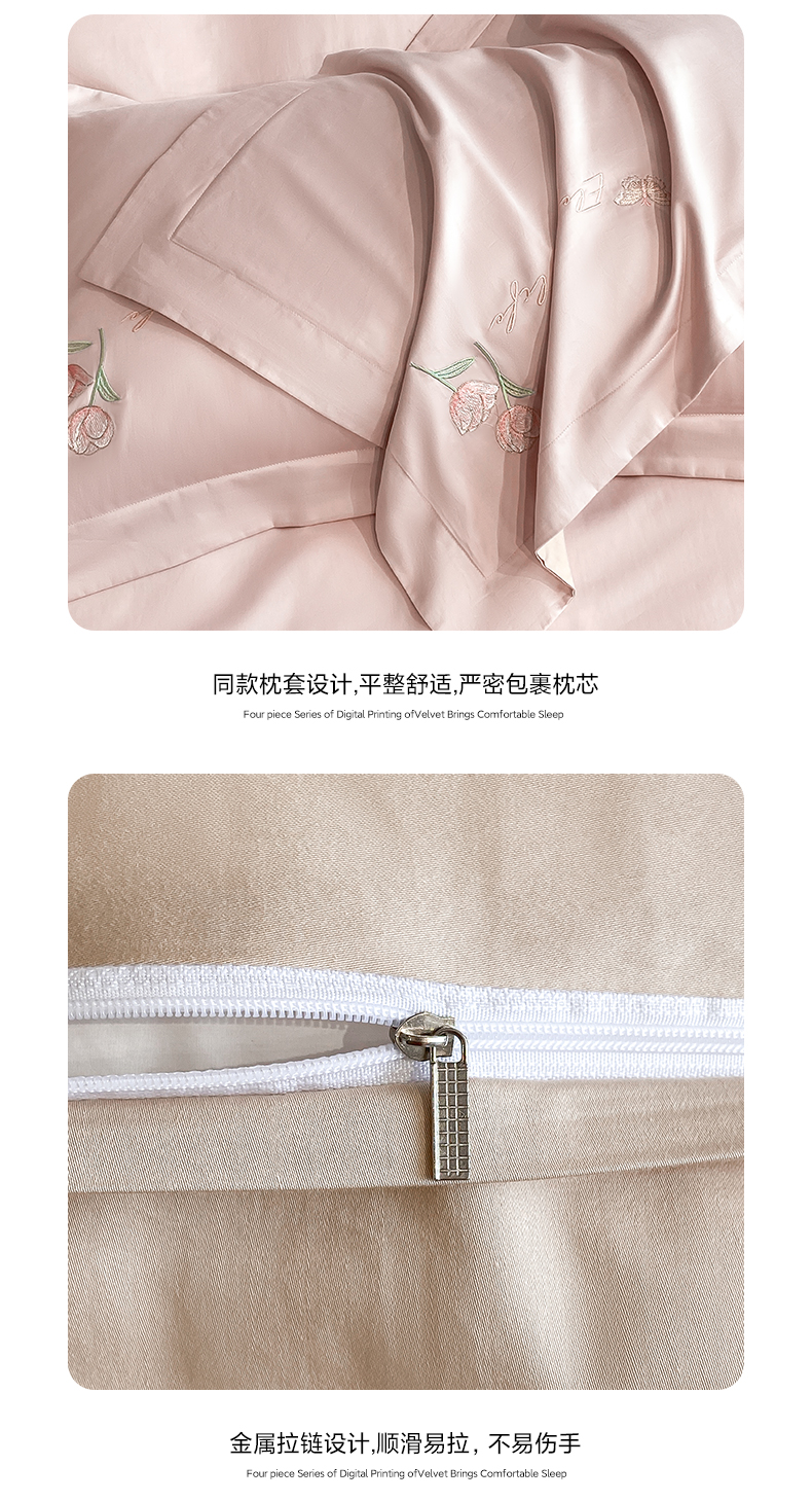 商品名称:欣宜家纺 2025新款纯棉全棉长绒棉刺绣绣花高端礼盒初暖系列四件套 轻奢粉