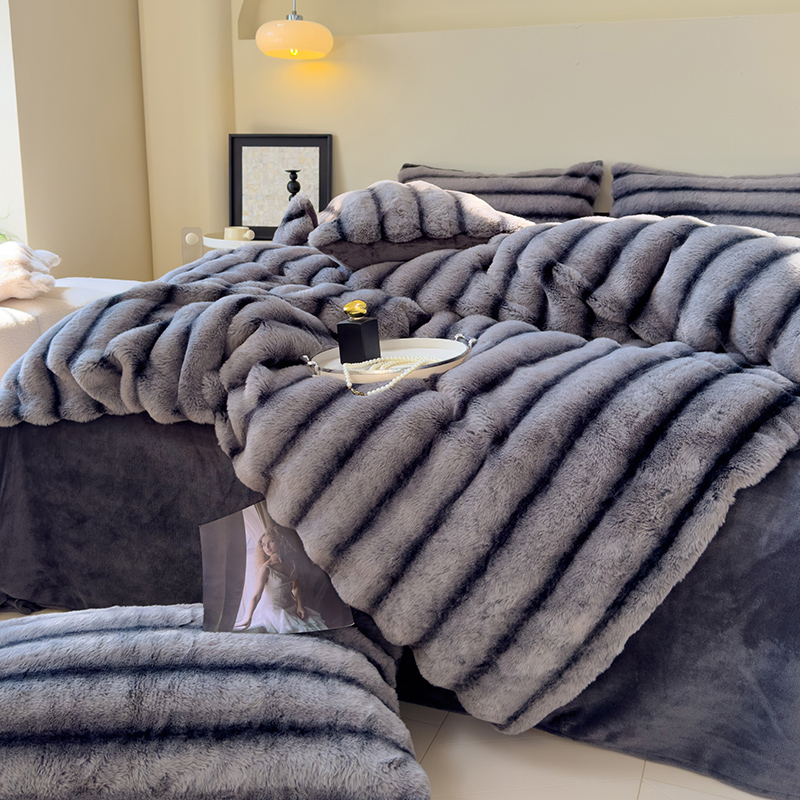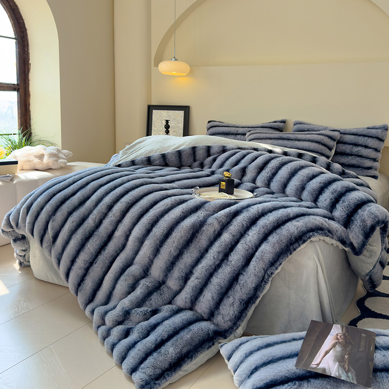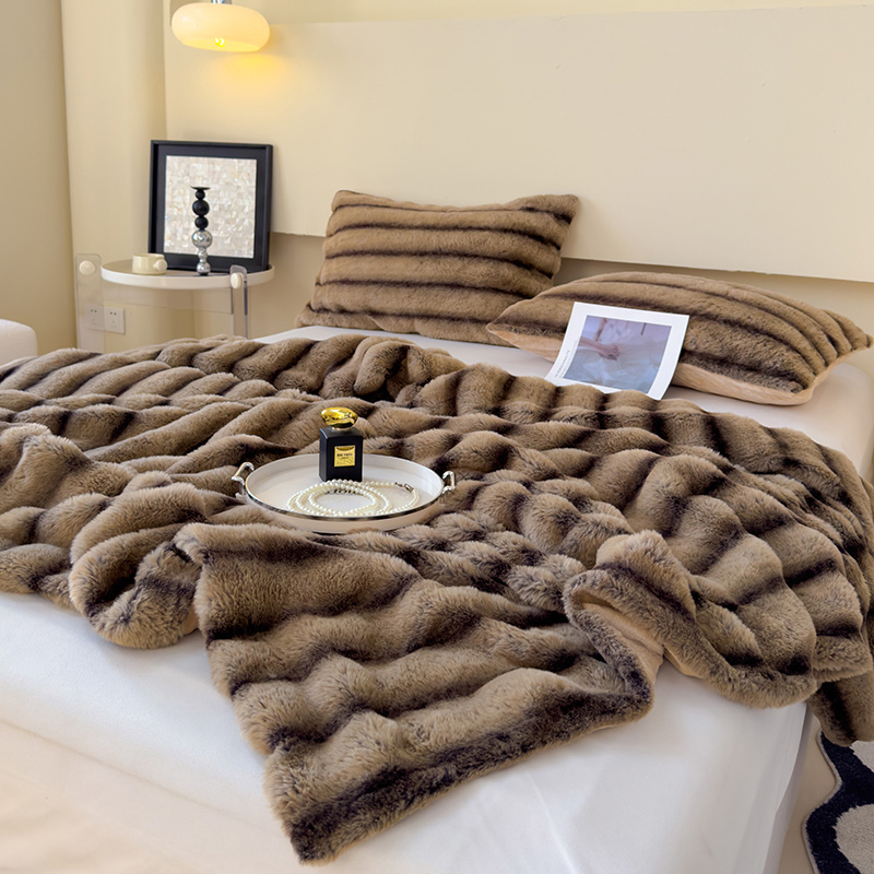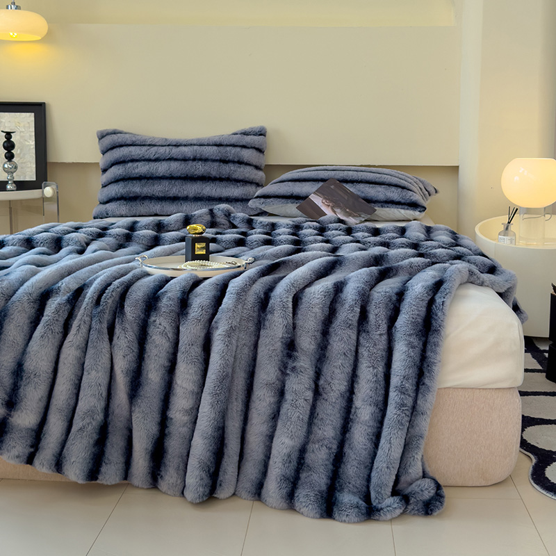 欣宜家纺 2025新款兔兔绒牛奶绒加厚兔毛毯保暖毯子 深紫