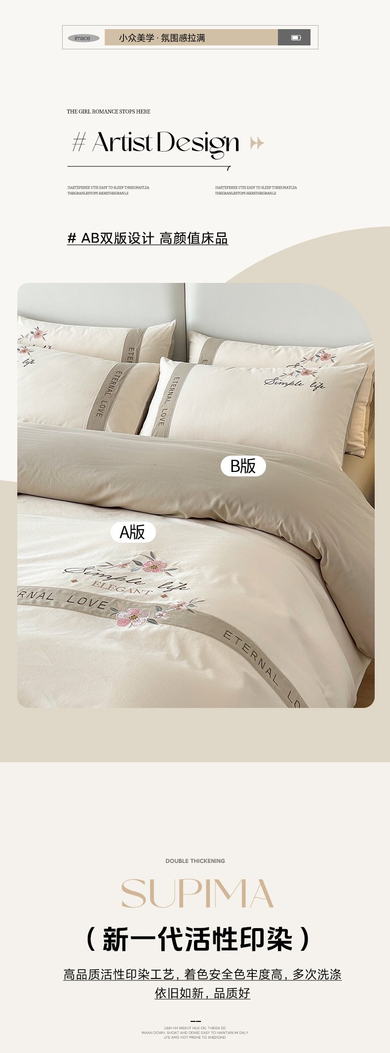 (总)欣宜家纺 2026春夏新款60支A类新疆长绒棉刺绣全棉四件套纯棉床品套件,玛丽-香芋紫,玛丽-梦幻蓝,玛丽-奶白,玛丽-轻奢粉,玛丽-石灰