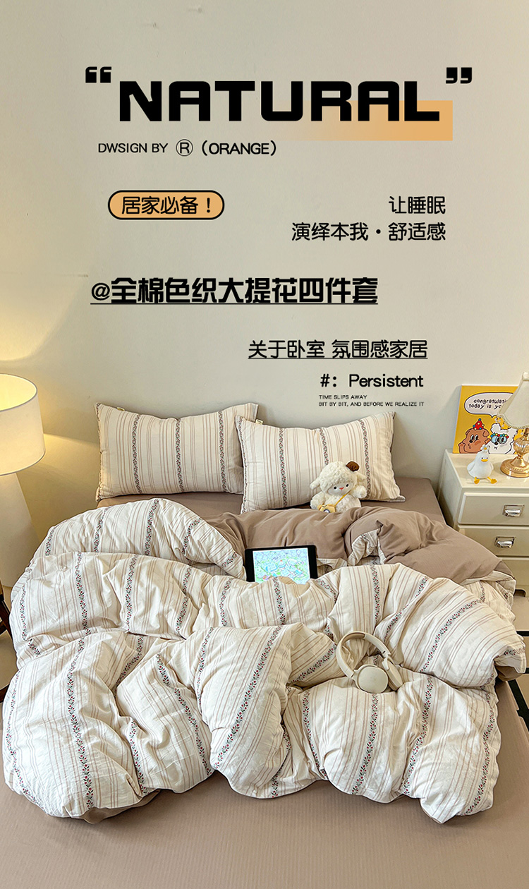 (总)锦彩家居 2026新款全棉色织大提花四件套-南法假日系列(提供买家秀),洛川-咖,洛川-灰,知遇-暖橘,知遇-蓝,叶茂-灰,叶茂-咖