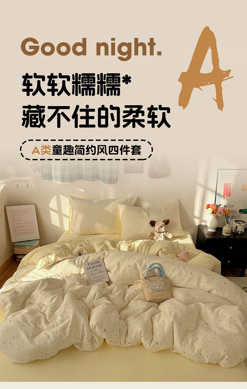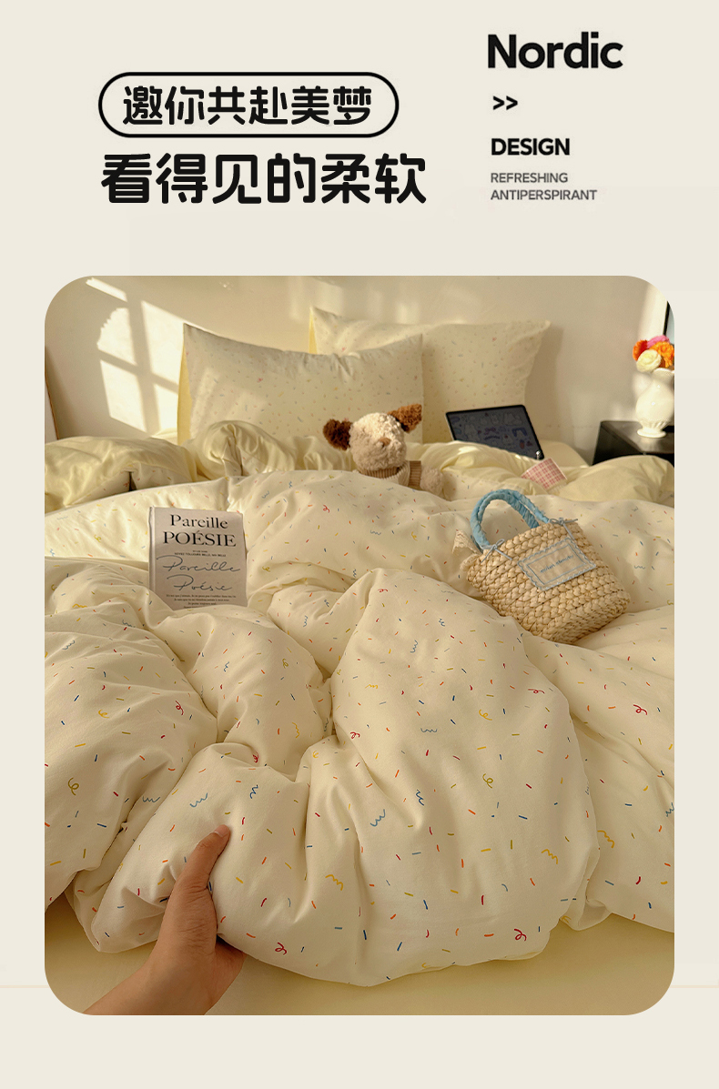 当前位置: 91家纺网 > 商品网购 > 床品套件 > 四件套 > 水洗棉四件套 > 沐芷 2026 【提供买家秀】水洗棉四件套A类简约小清新床上用品床笠款被套床单三件套被罩卡通可爱 芝士碎