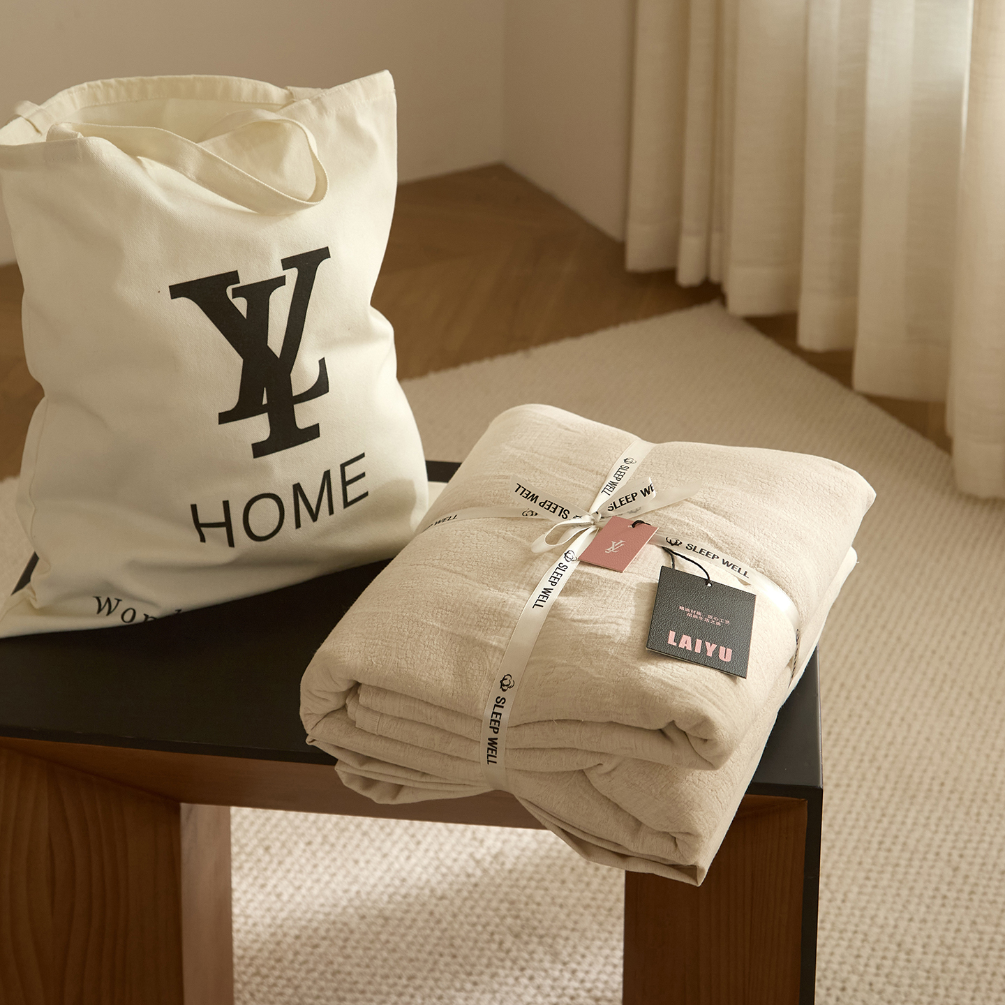 (总)莱豫家纺 2026新款A类亚麻棉麻色织提花工艺款四件套,兰亭序灰,冷香月灰,梨月白 原色,落庭霜粉,浅纱云咖,忆江南绿,樱花调粉,长相思咖,织花锦绿,包装图