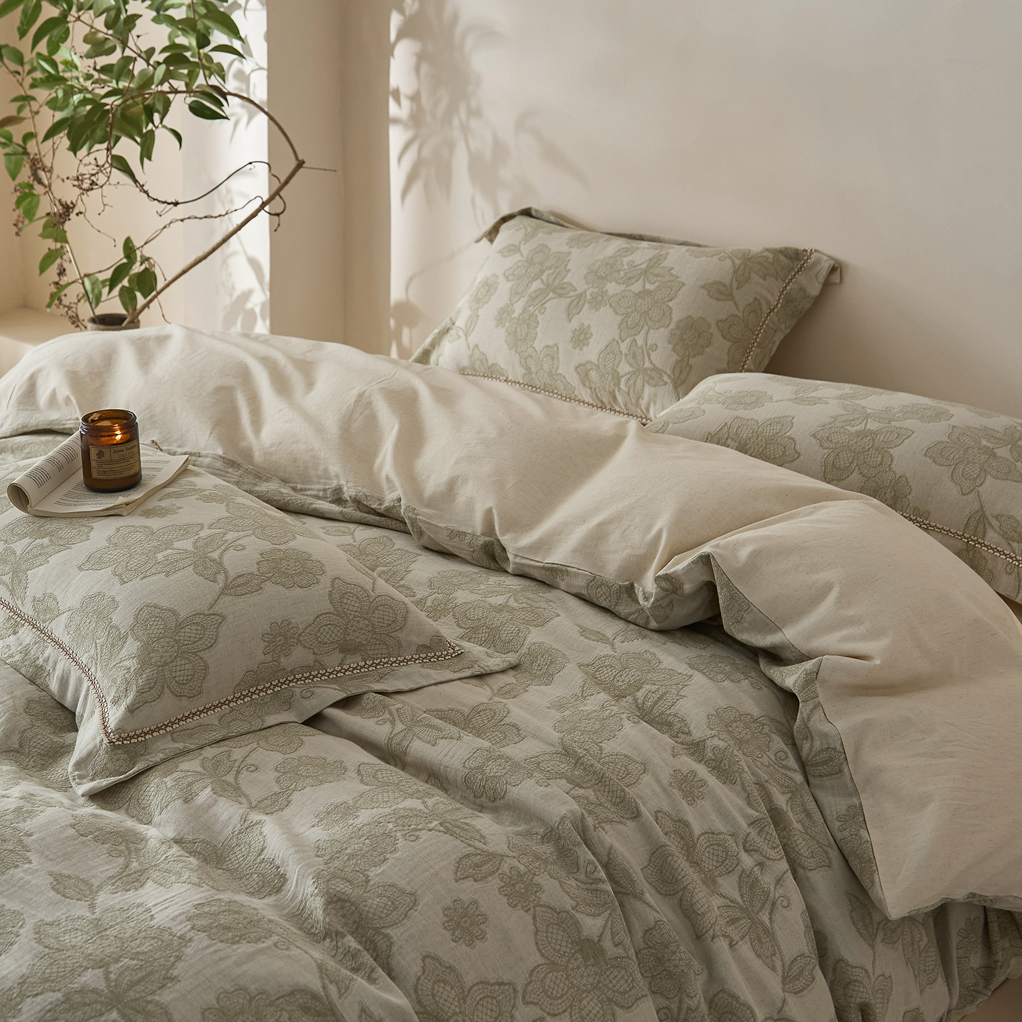 莱豫家纺 2026新款A类亚麻棉麻色织提花工艺款四件套 忆江南绿