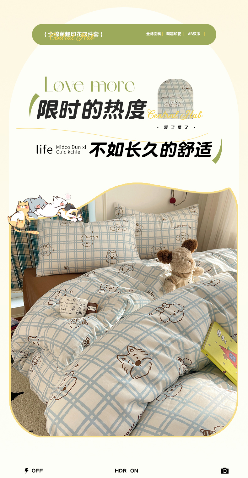 当前位置: 91家纺网 > 商品网购 > 床品套件 > 四件套 > 全棉普通四件套 > 瑞莱 2026新款ing小清新费尔岛全棉四件套 酷仔