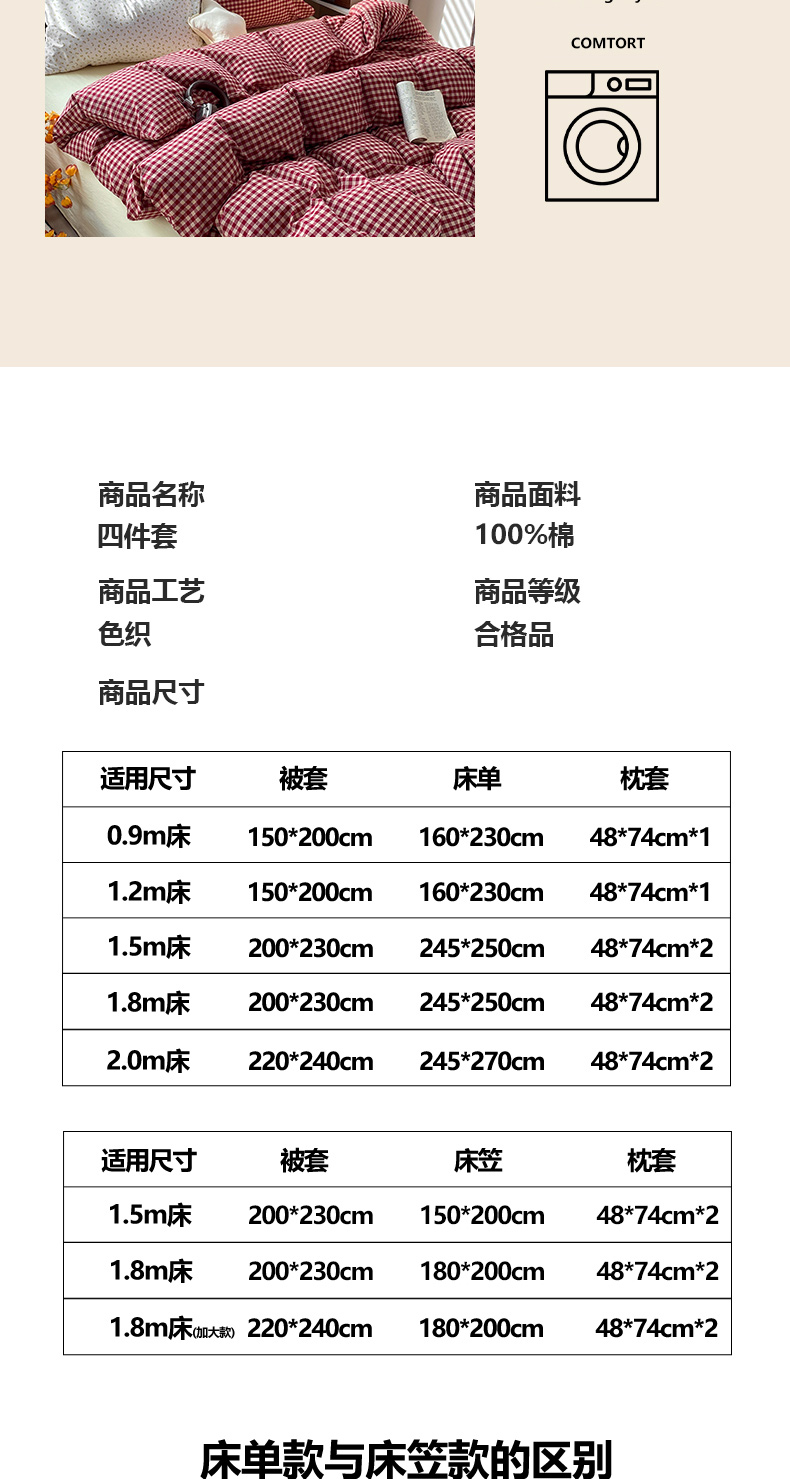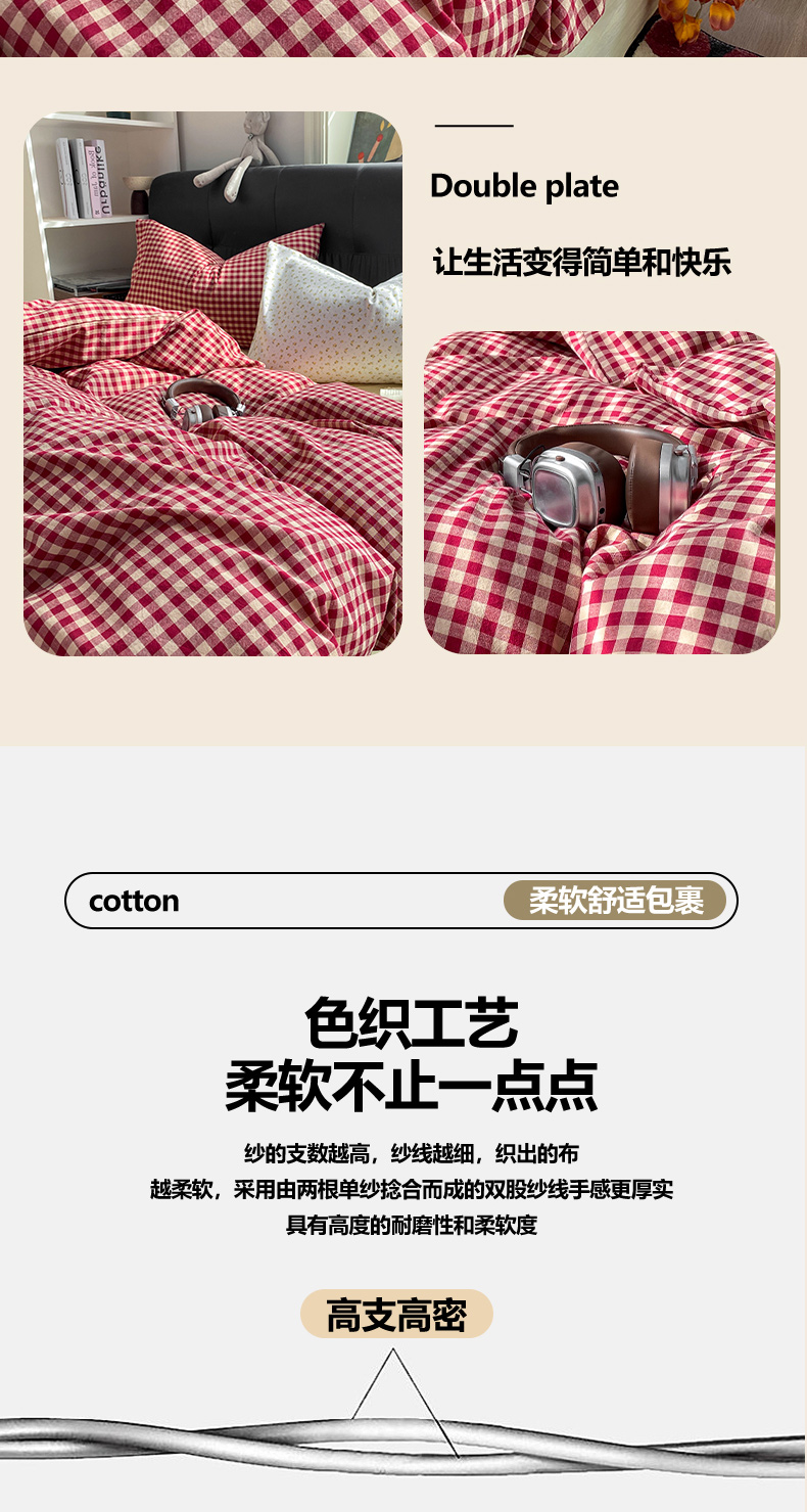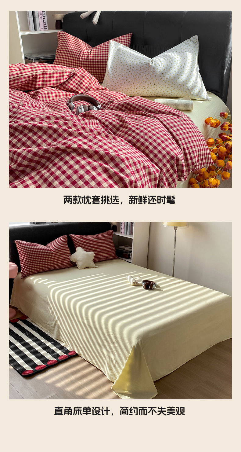 当前位置: 91家纺网 > 商品网购 > 床品套件 > 四件套 > 水洗棉四件套 > 对白 2026新款ins风全棉色织水洗棉纯棉简约极简格子系列四件套-草莓奶昔【提供买家秀】 草莓奶昔(枕套格子)