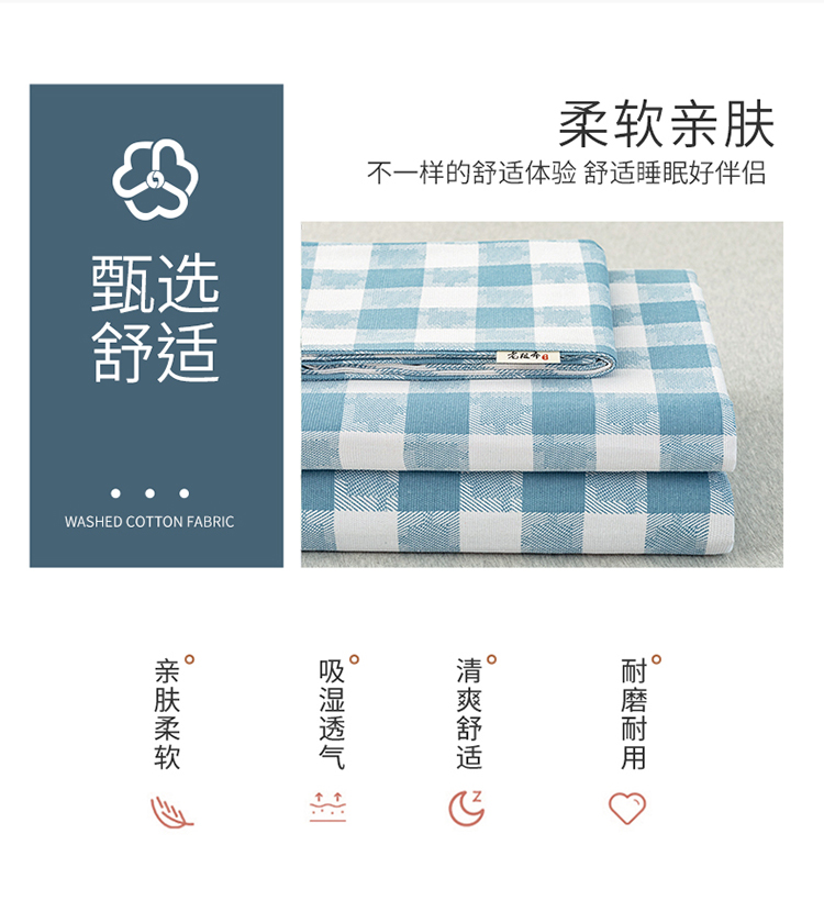 • 91家纺网 家纺一手货源 找家纺 居美良品 2026新款无印风正宗加厚老粗布床单单件枕套三件套可做凉席 月白-蓝
