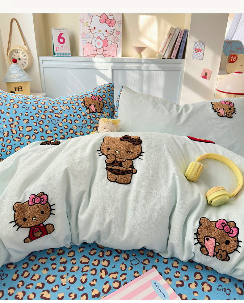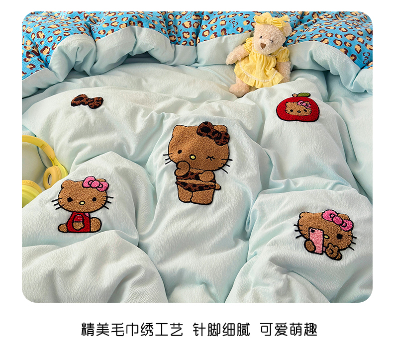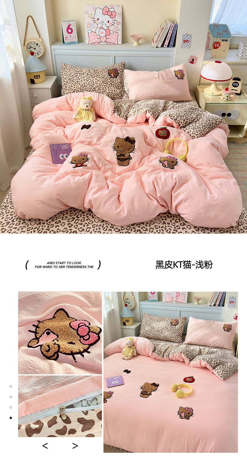 当前位置: 91家纺网 > 商品网购 > 床品套件 > 四件套 > 毛巾绣四件套 > (总)橙意 2026新款云感双层纱贴布绣四件套-黑皮KT猫