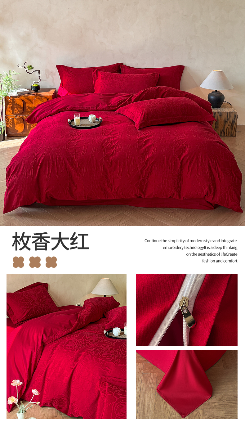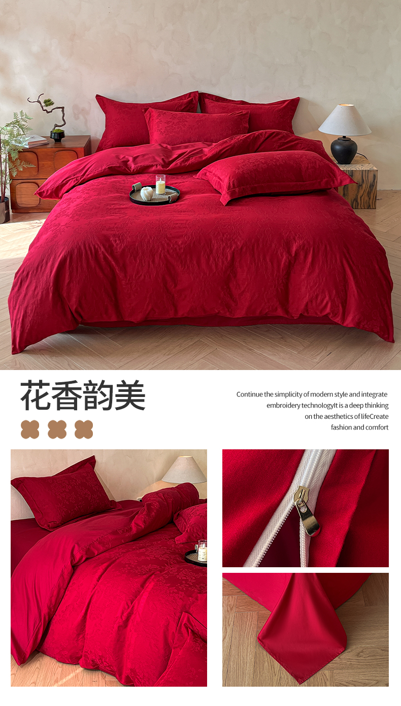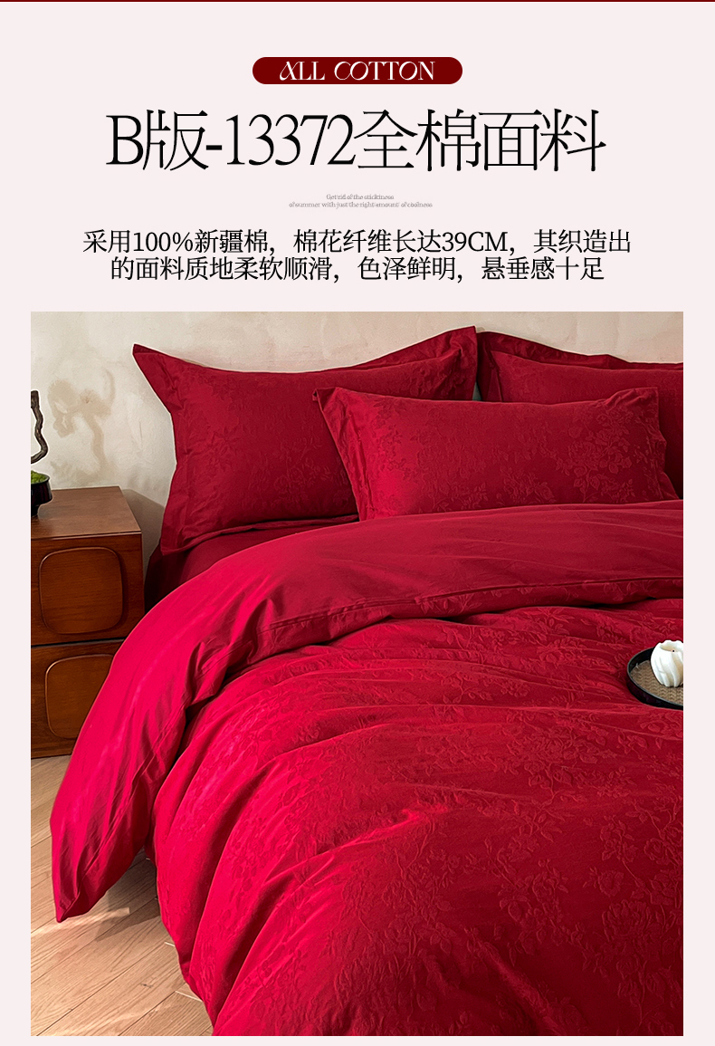 商品名称:(总)笙意家纺 2026新款婚庆A版全棉60支亮面提花B版40支13372全棉四件套