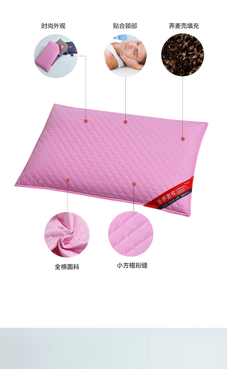 商品名称:(总)糖果枕芯 2026新款全棉天然绗绣小方格全荞麦护颈枕保健枕枕头枕芯