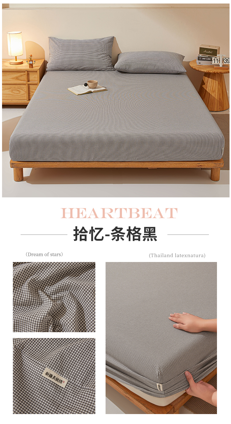 • 91家纺网 家纺一手货源 找家纺 女子家纺 2026新款全棉色织水洗纯色条格纯棉单层床笠床垫保护套 拾忆-条纹灰