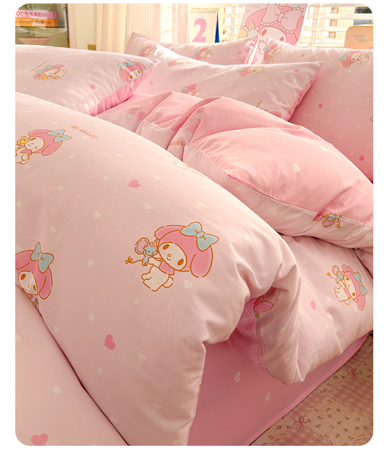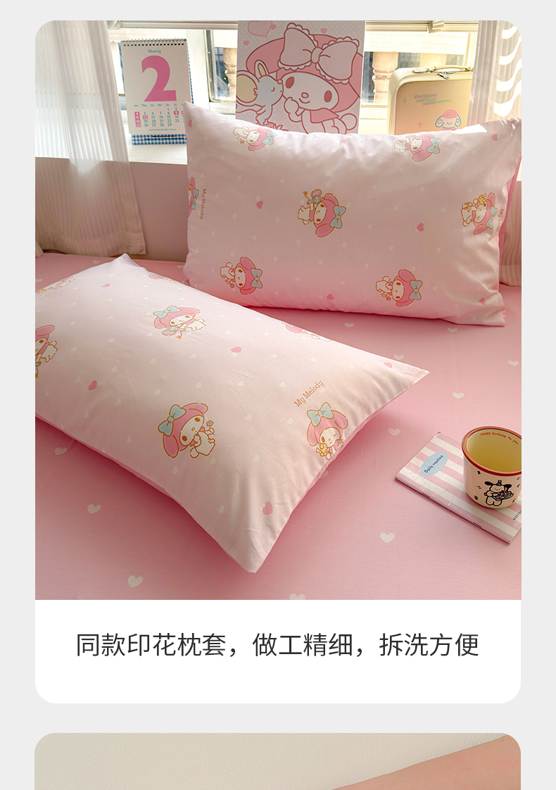 商品名称:曼之夏 2026新款全棉三丽鸥正版授权卡通四件套 波点美乐蒂