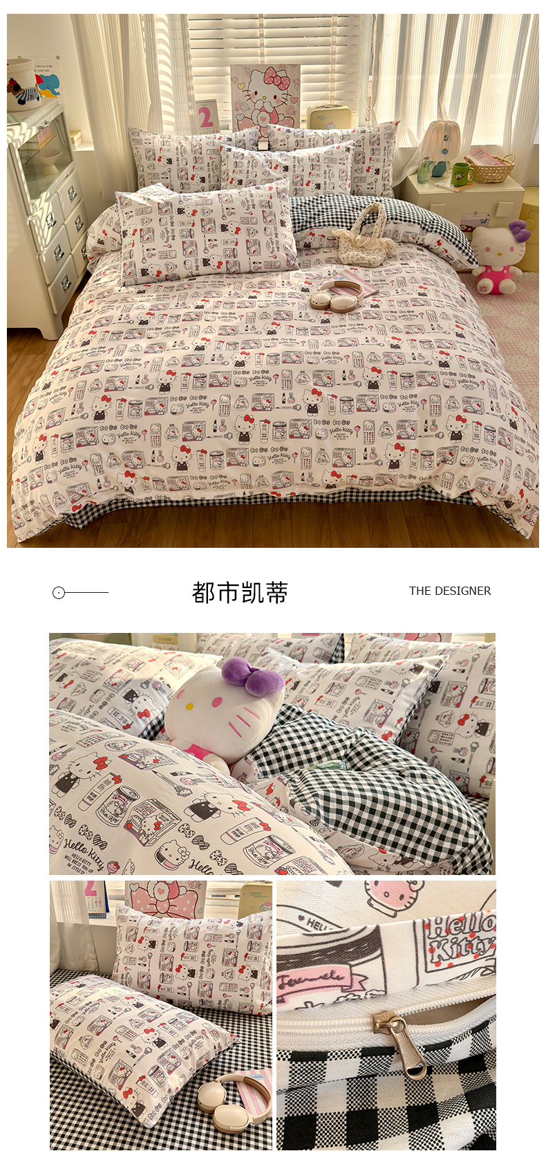 (总)曼之夏 2026新款全棉三丽鸥正版授权卡通四件套,波点美乐蒂,电话凯蒂,都市凯蒂,红格凯蒂,蝴蝶结大耳狗,凯蒂果果,蘑菇凯蒂,牛奶凯蒂,甜甜凯蒂,晚安大耳狗,樱桃凯蒂,游乐园大耳狗,元气美乐蒂,运动凯蒂