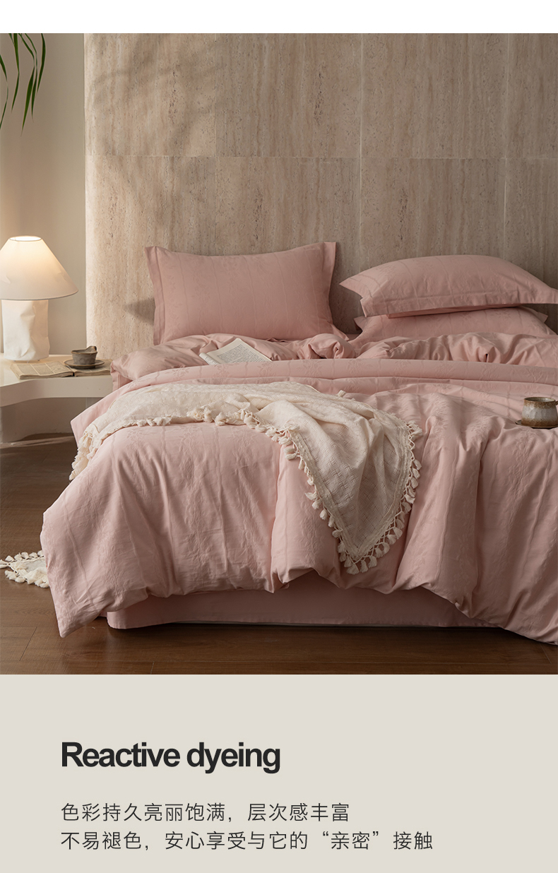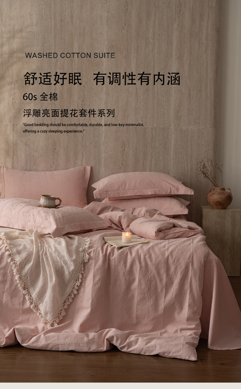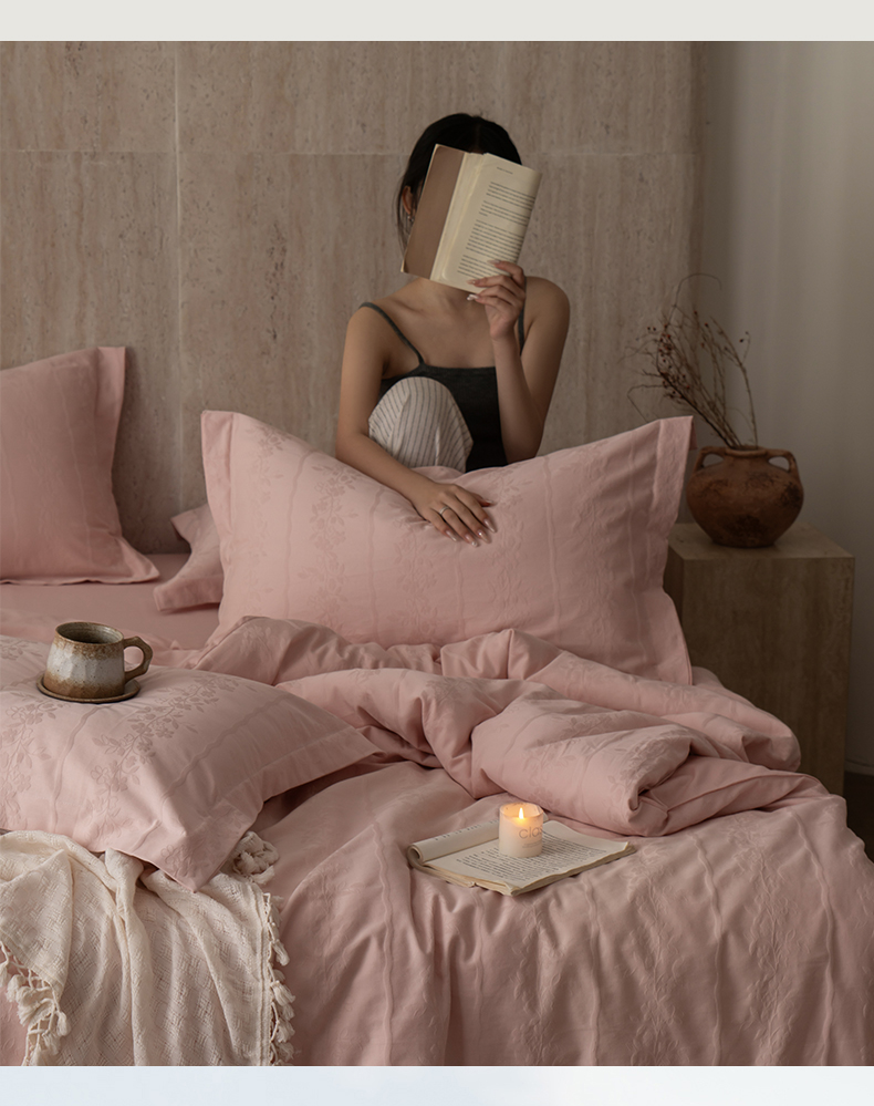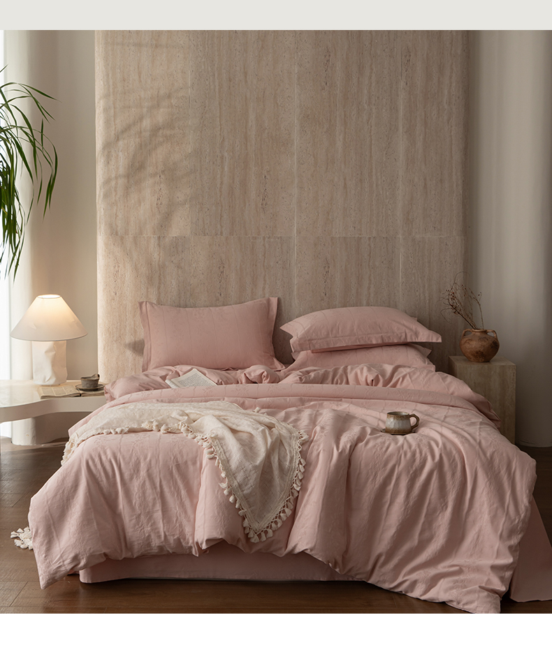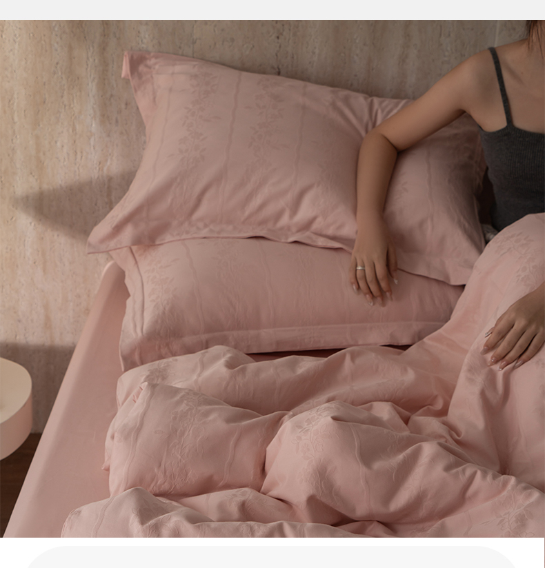 当前位置: 91家纺网 > 商品网购 > 床品套件 > 四件套 > 全棉普通四件套 > 爱思佳 2026新款A类全棉60s浮雕亮面提花系列四件套 浪漫粉