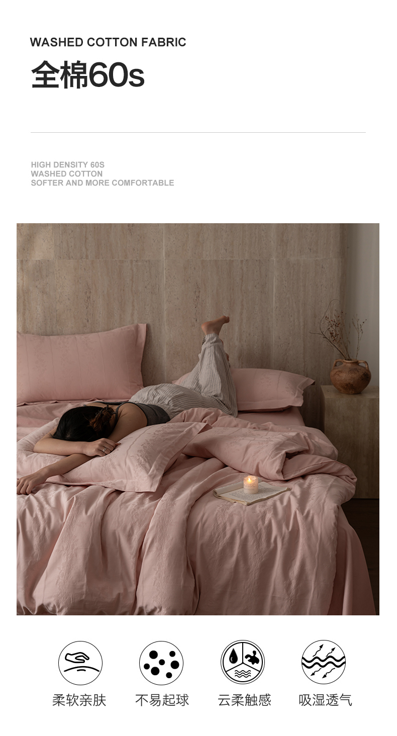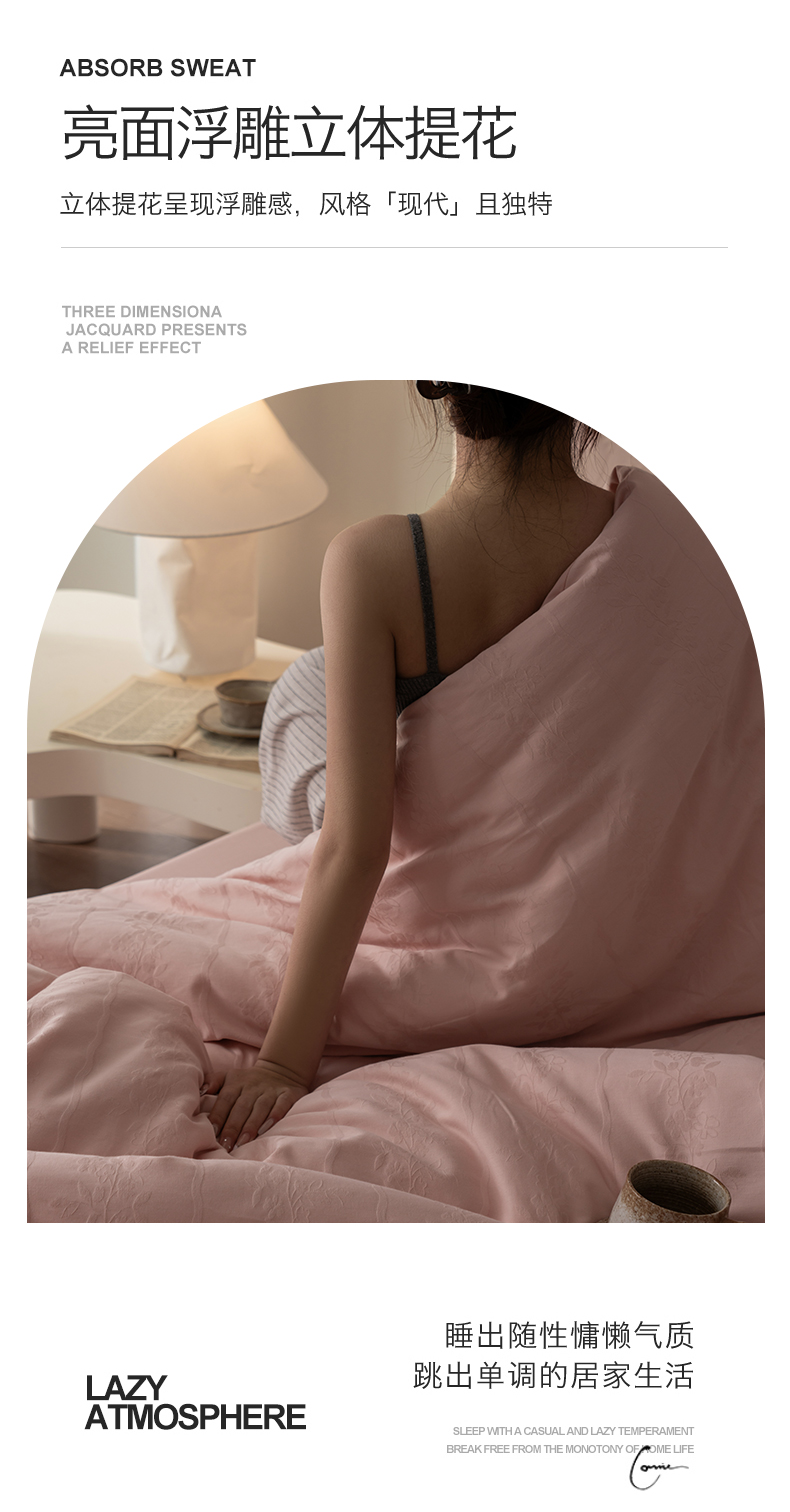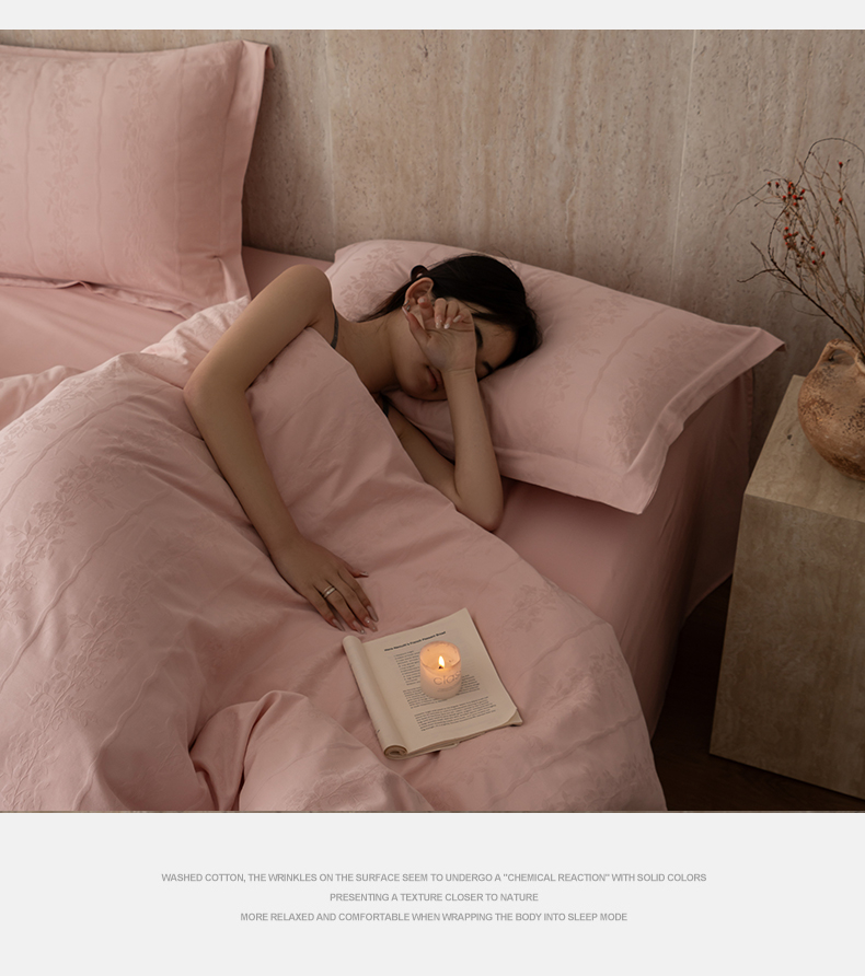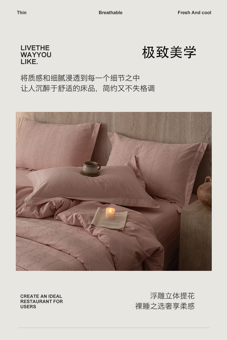当前位置: 91家纺网 > 商品网购 > 床品套件 > 四件套 > 全棉普通四件套 > 爱思佳 2026新款A类全棉60s浮雕亮面提花系列四件套 浪漫粉