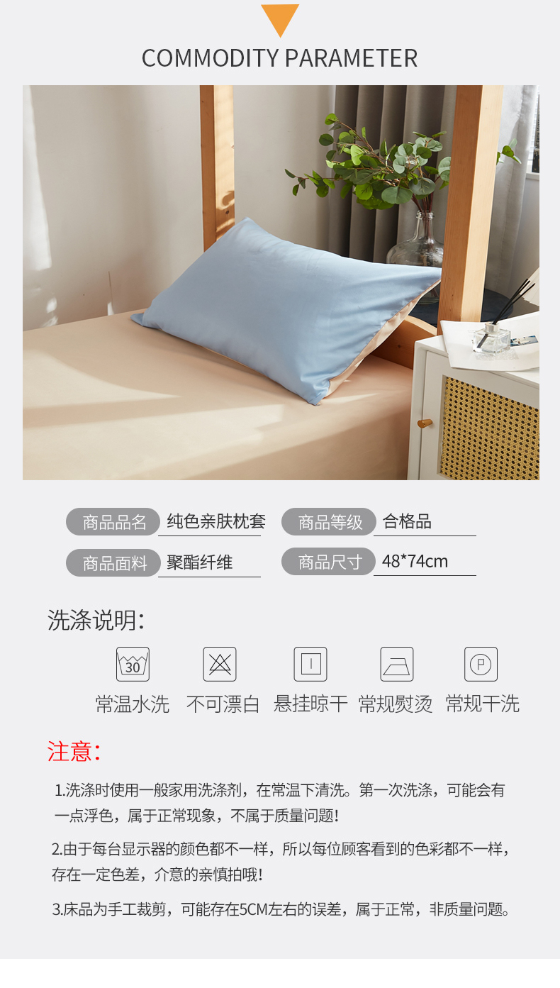 商品名称:啊雅家居 2026新款ins简约纯色磨毛系列单枕套 天空兰