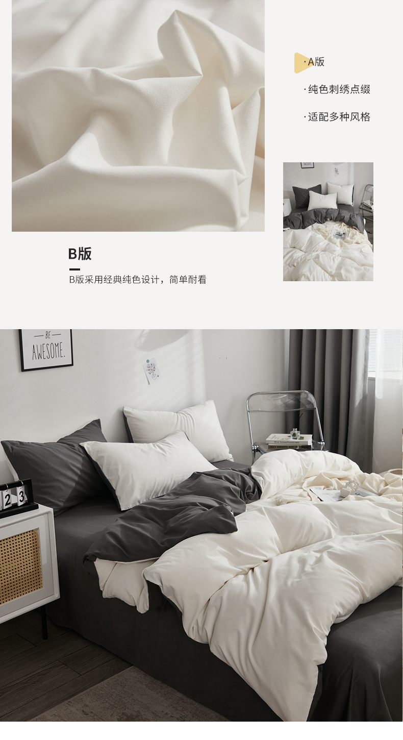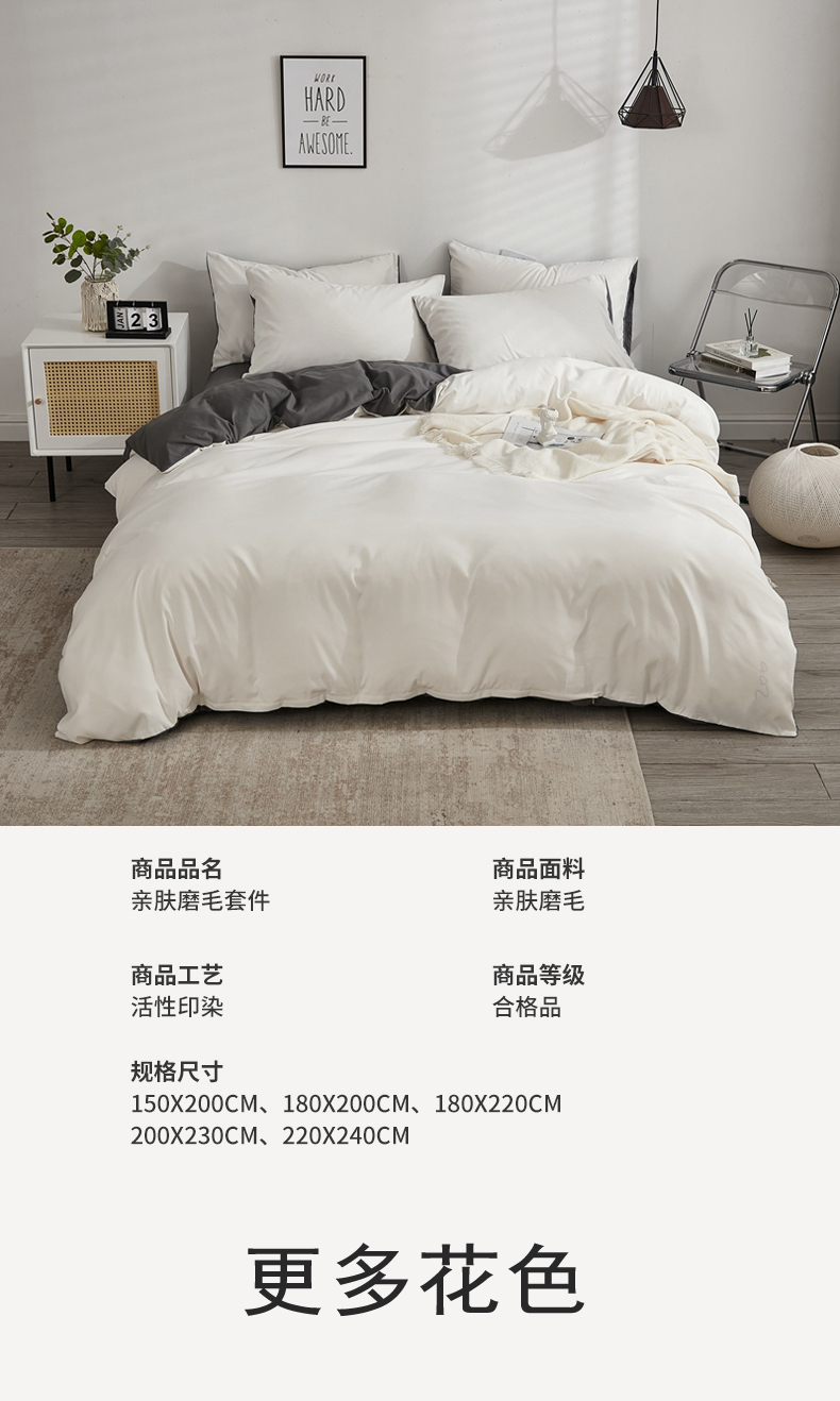 商品名称:啊雅家居 2026新款ins简约纯色磨毛被套可订制logo 米白加深灰