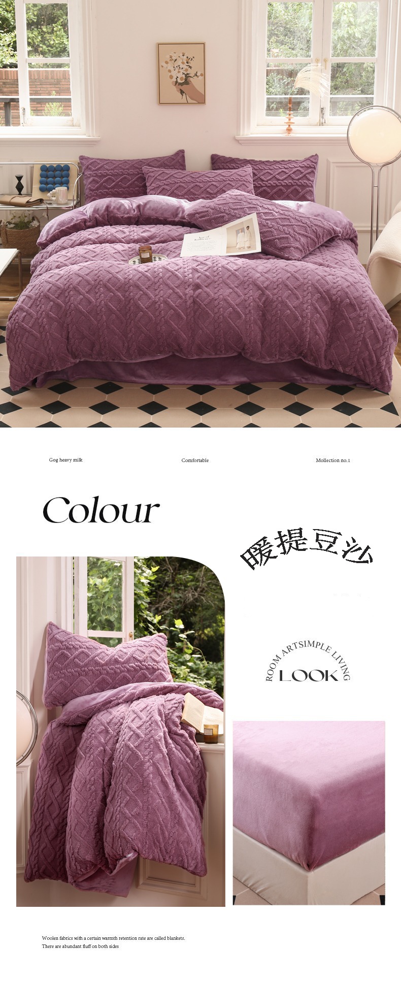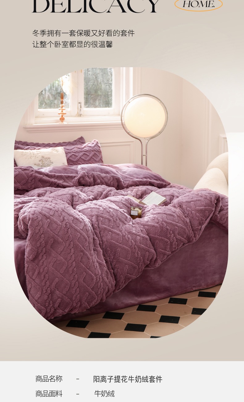 当前位置: 91家纺网 > 商品网购 > 床品套件 > 四件套 > 牛奶绒四件套 > 啊雅家居 2026新款阳离子提花牛奶绒三件套四件套 暖提豆沙
