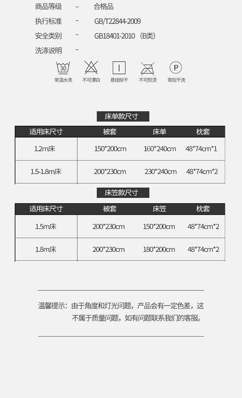 【床笠款】1.8四件套-被套200x230 | ¥85.00 |
