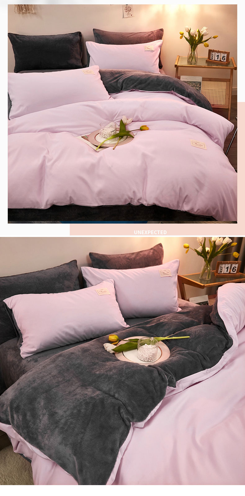 啊雅家居 2026新款水洗棉加绒单面绒被套 暖粉加牛奶绒