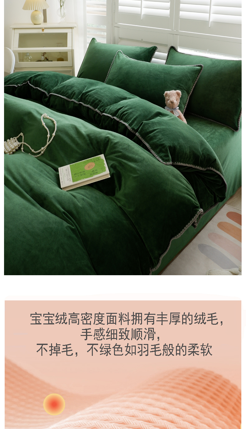 当前位置: 91家纺网 > 商品网购 > 床品套件 > 四件套 > 其它四件套 > 啊雅家居 2026新款贝壳边宝宝绒四件套 贝壳草绿