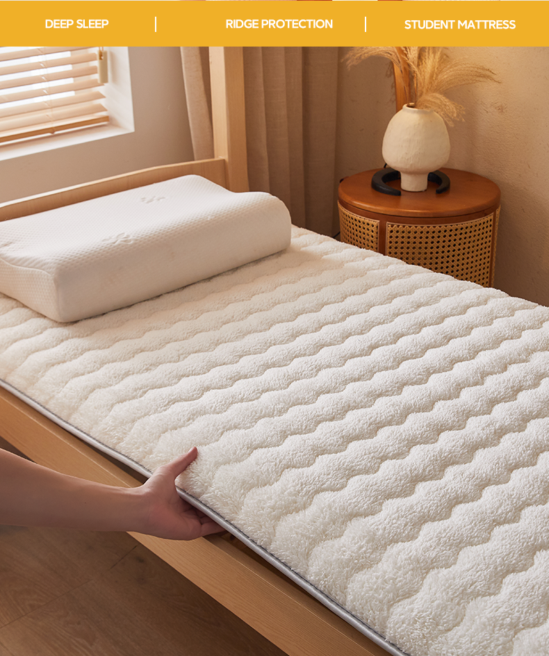 (总)月茶家纺 2026新款皇冠学生款单边波浪床垫,皇冠波浪白,皇冠波浪灰