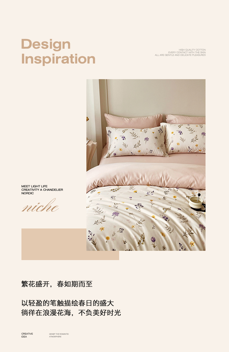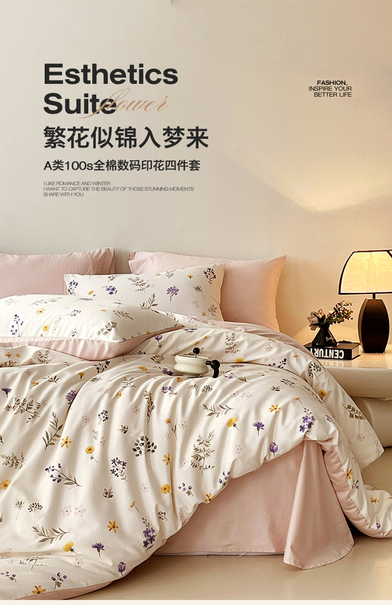 (总)鼎飞家纺 2026新款100S长绒棉数码印花四件套-风吟花语